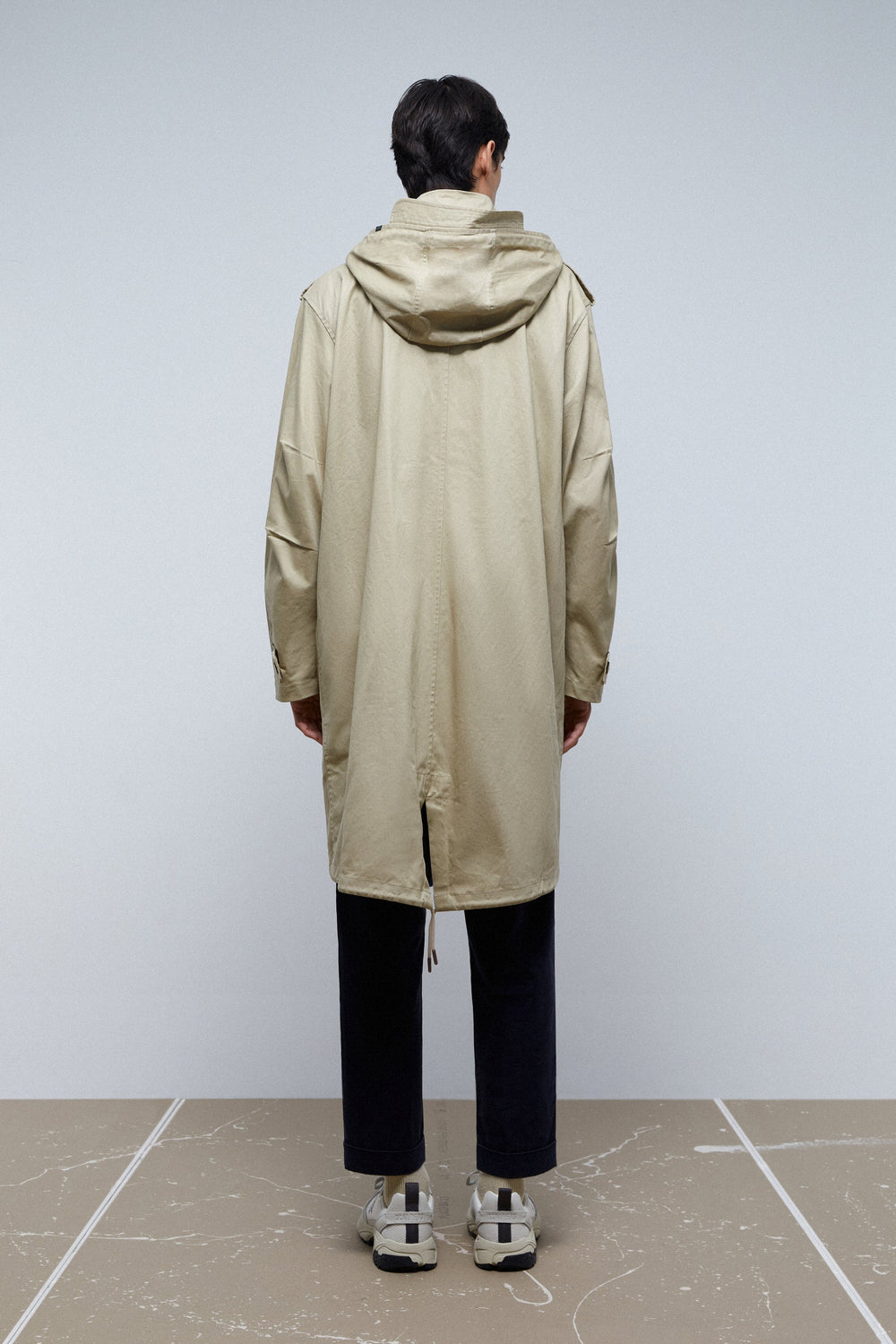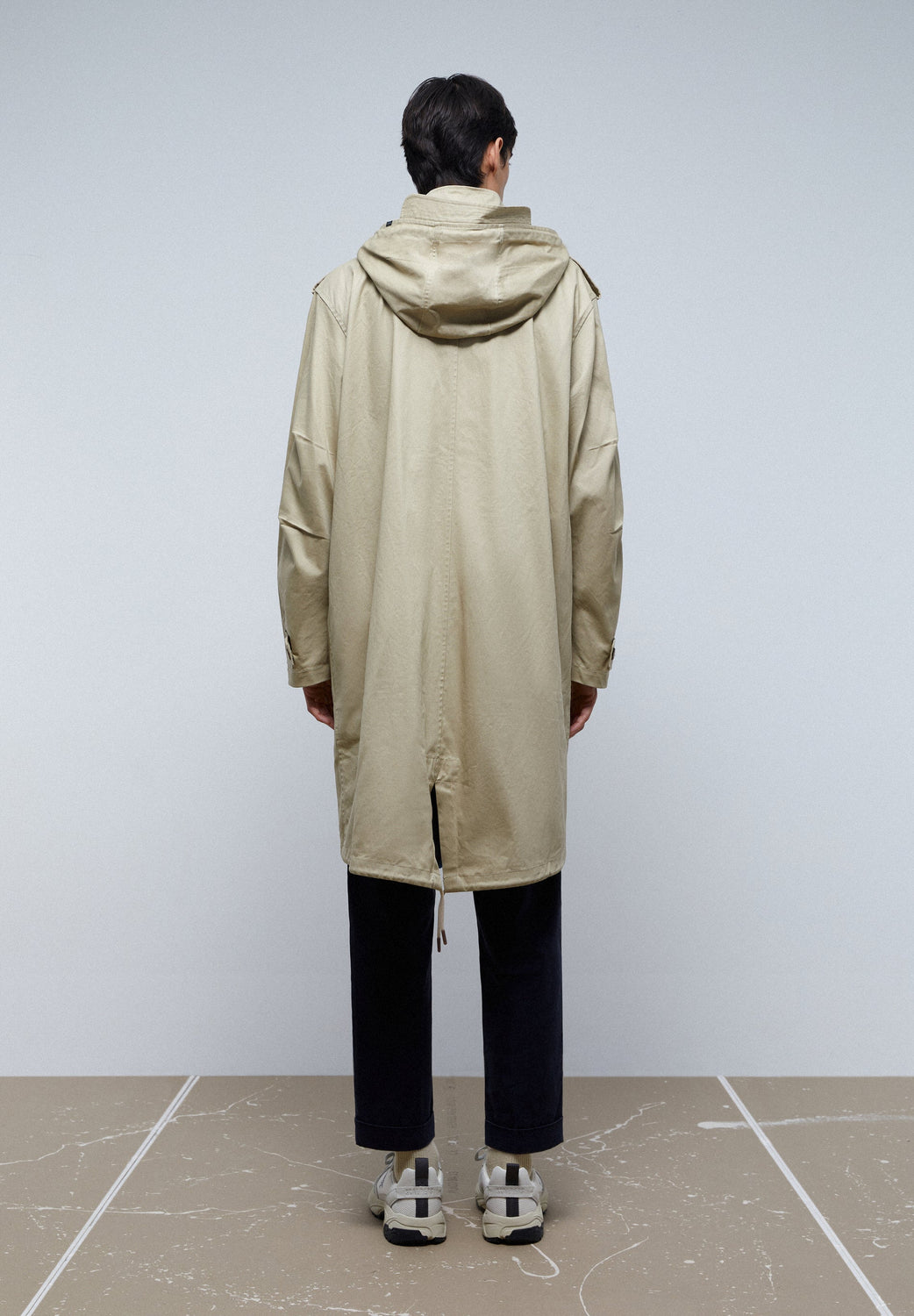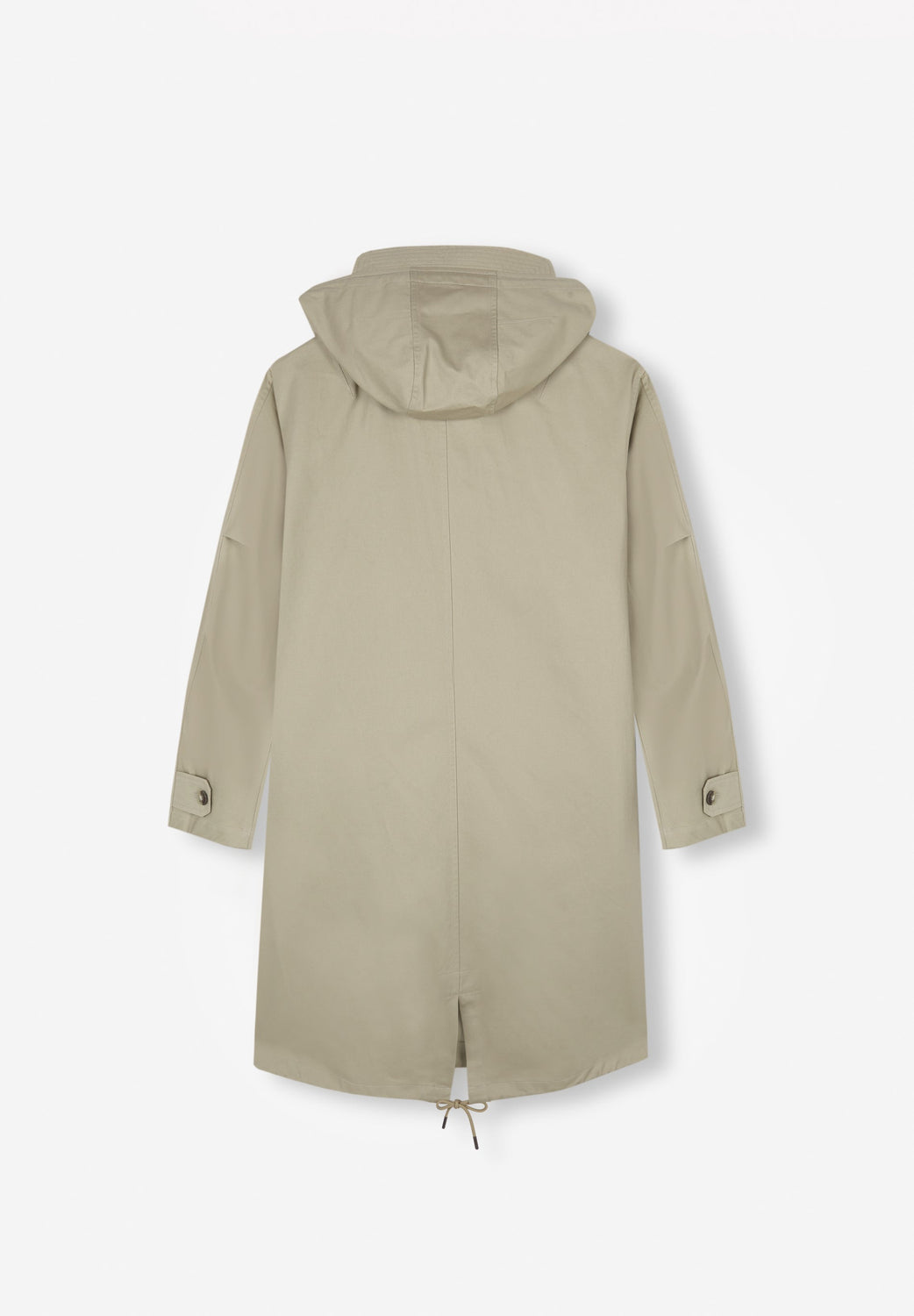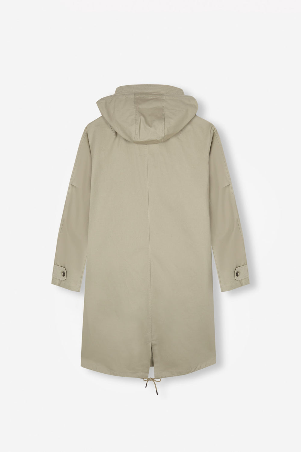 - Back opening with drawstring at the hem