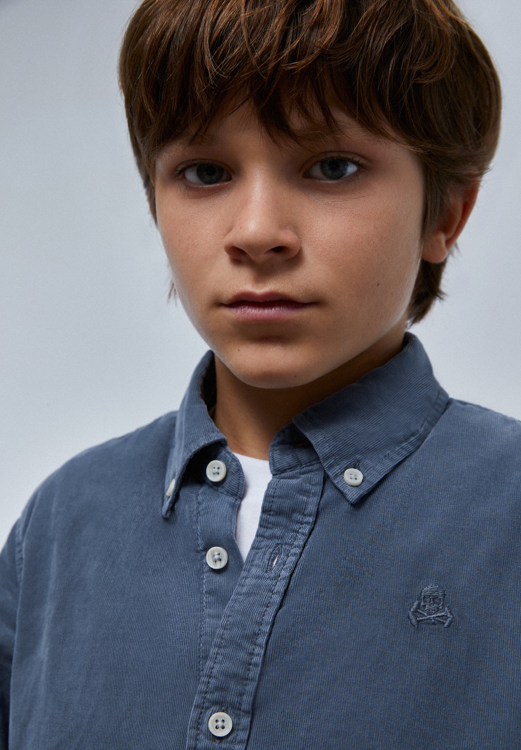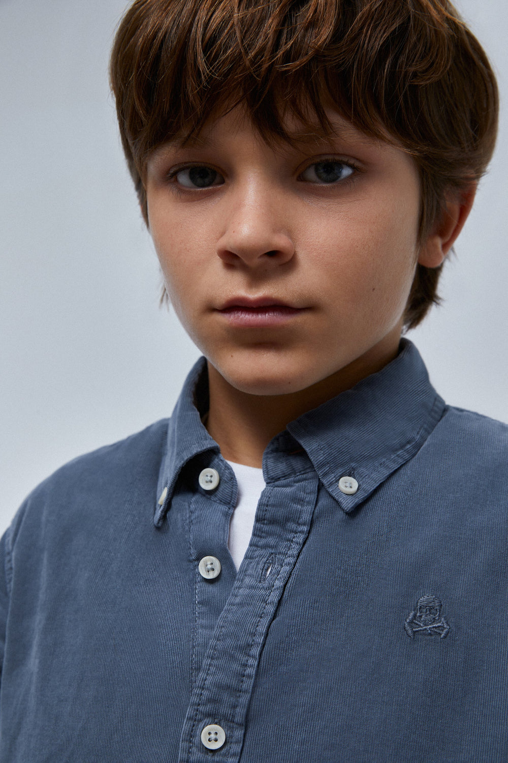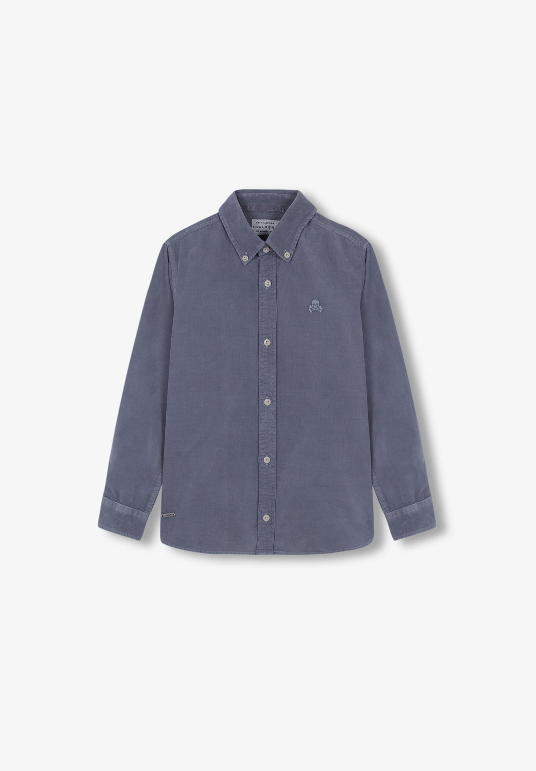 Corduroy shirt with a matching embroidered skull.