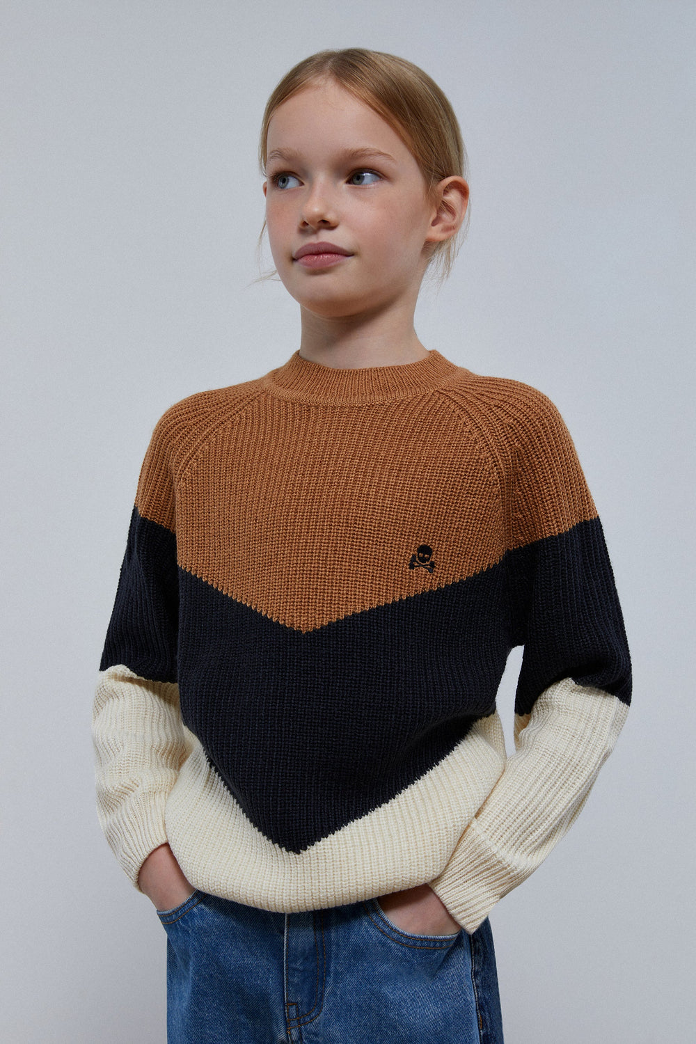 Knit sweater with contrast skull