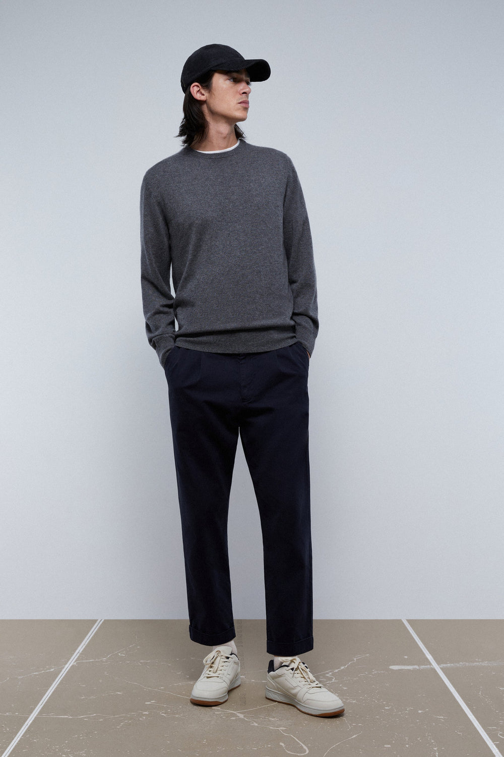 Jersey confeccionado en cachemira 100%. Corte Regular Fit. Cuello redondo. Manga larga.