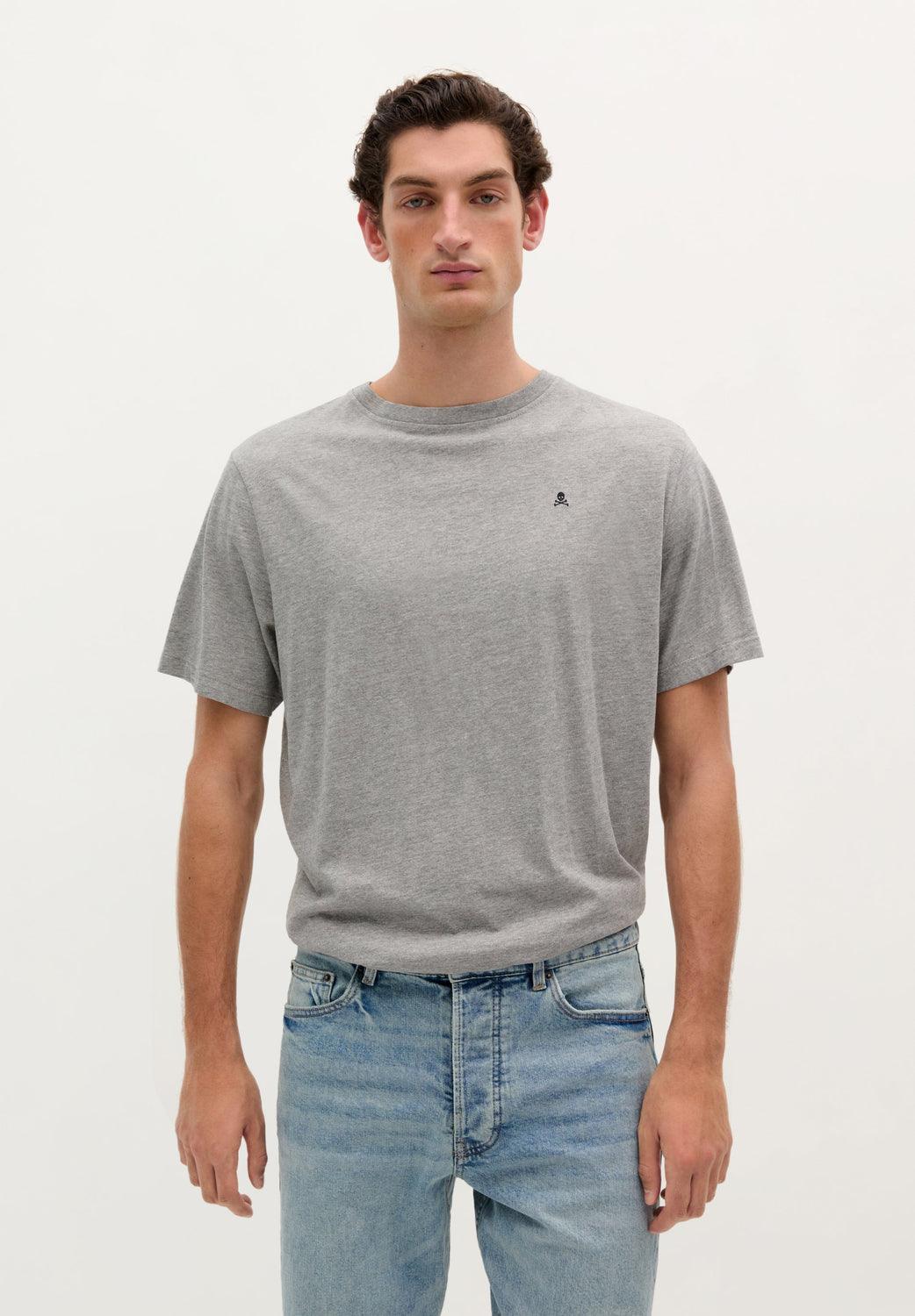 A basic T-shirt crafted from 100% BCI cotton, designed in a relaxed fit with a classic round neckline and short sleeves, finished with a subtle embroidered skull detail.