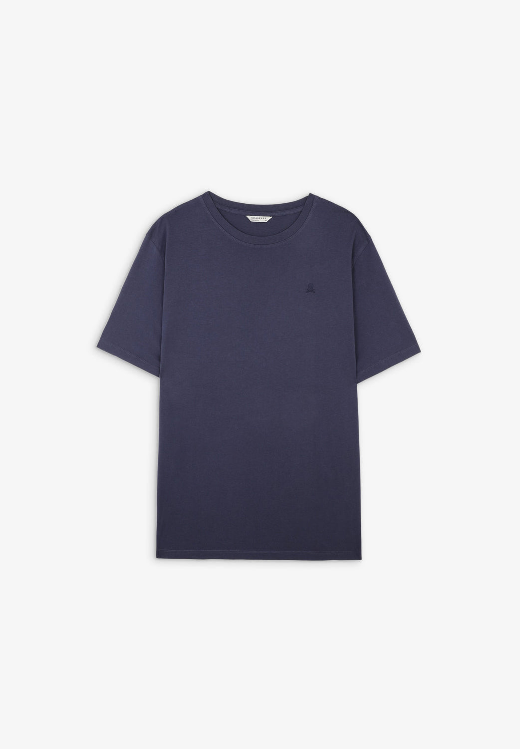 A basic T-shirt crafted from 100% BCI cotton, designed in a relaxed fit with a classic round neckline and short sleeves, finished with a subtle embroidered skull detail.