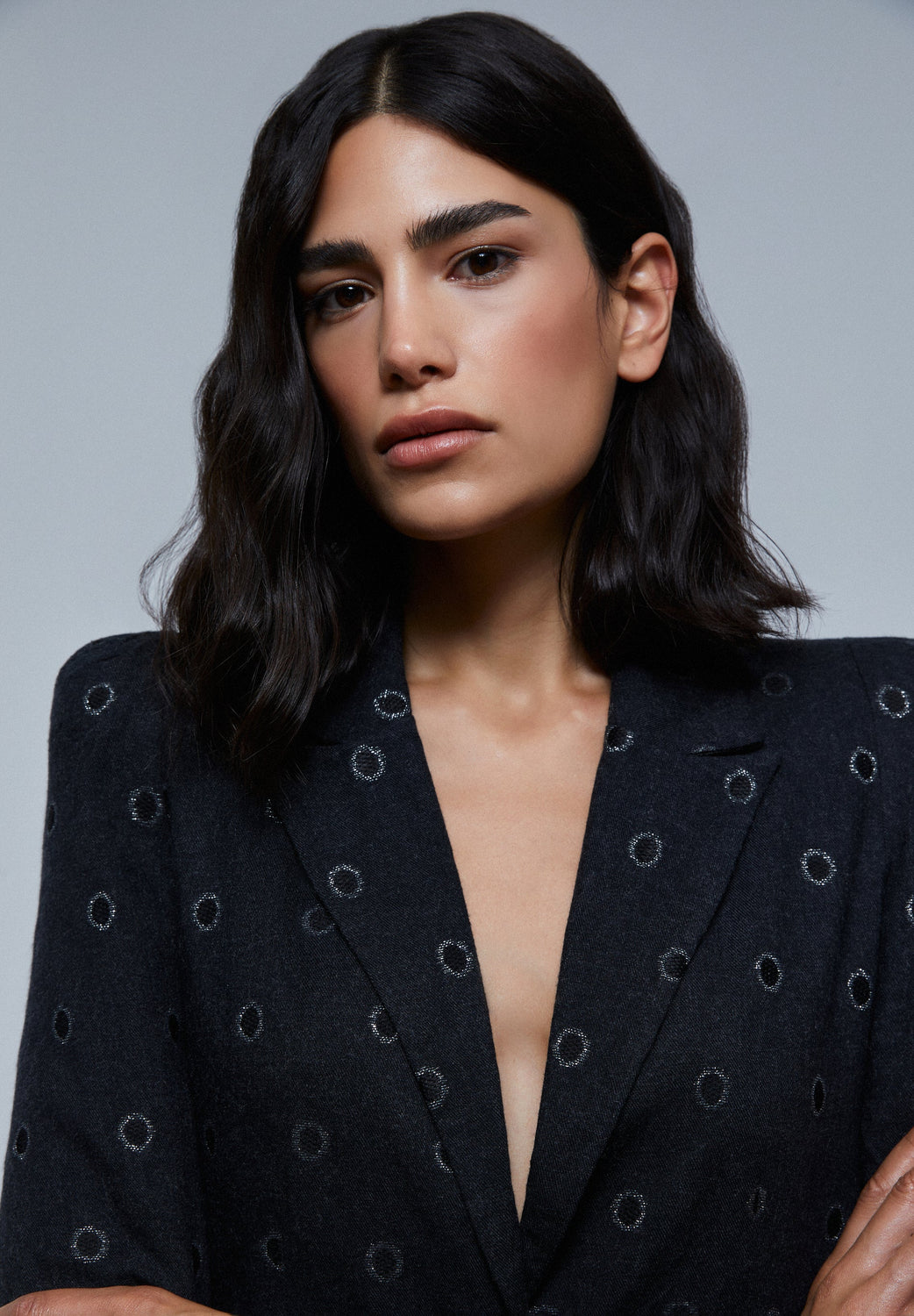 Blazer with circles with metallic thread details