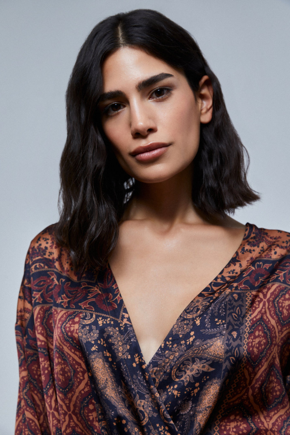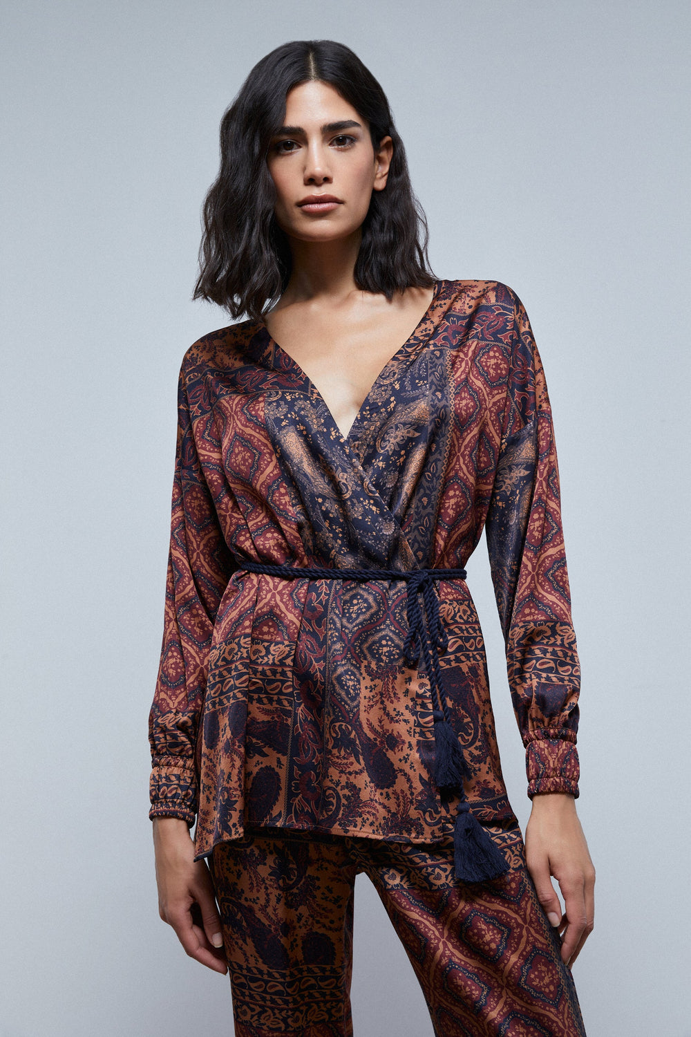Kimono blouse with print.