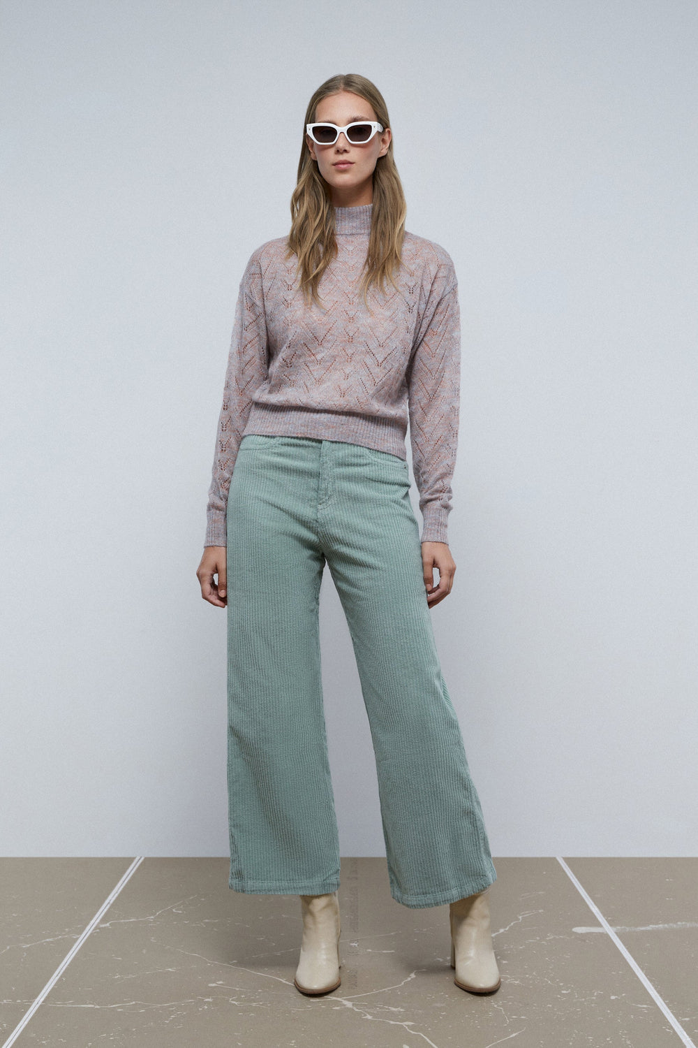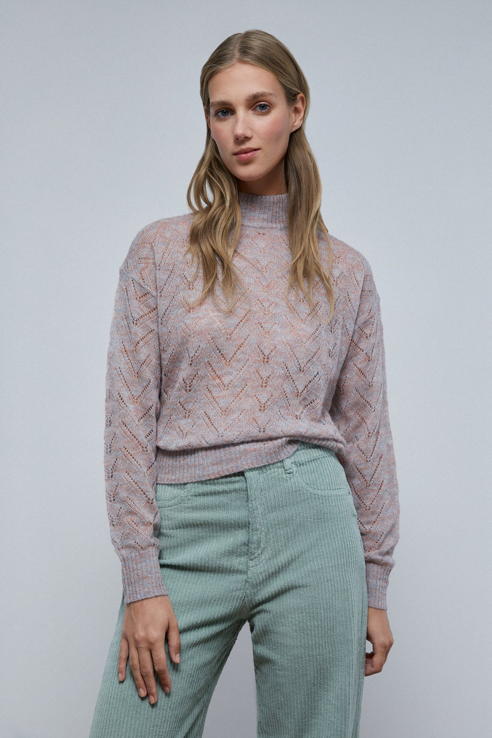 DIE-CUT SWEATER WITH PERKINS COLLAR