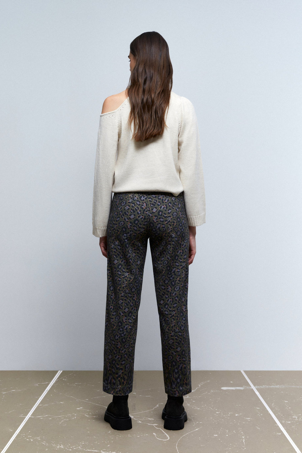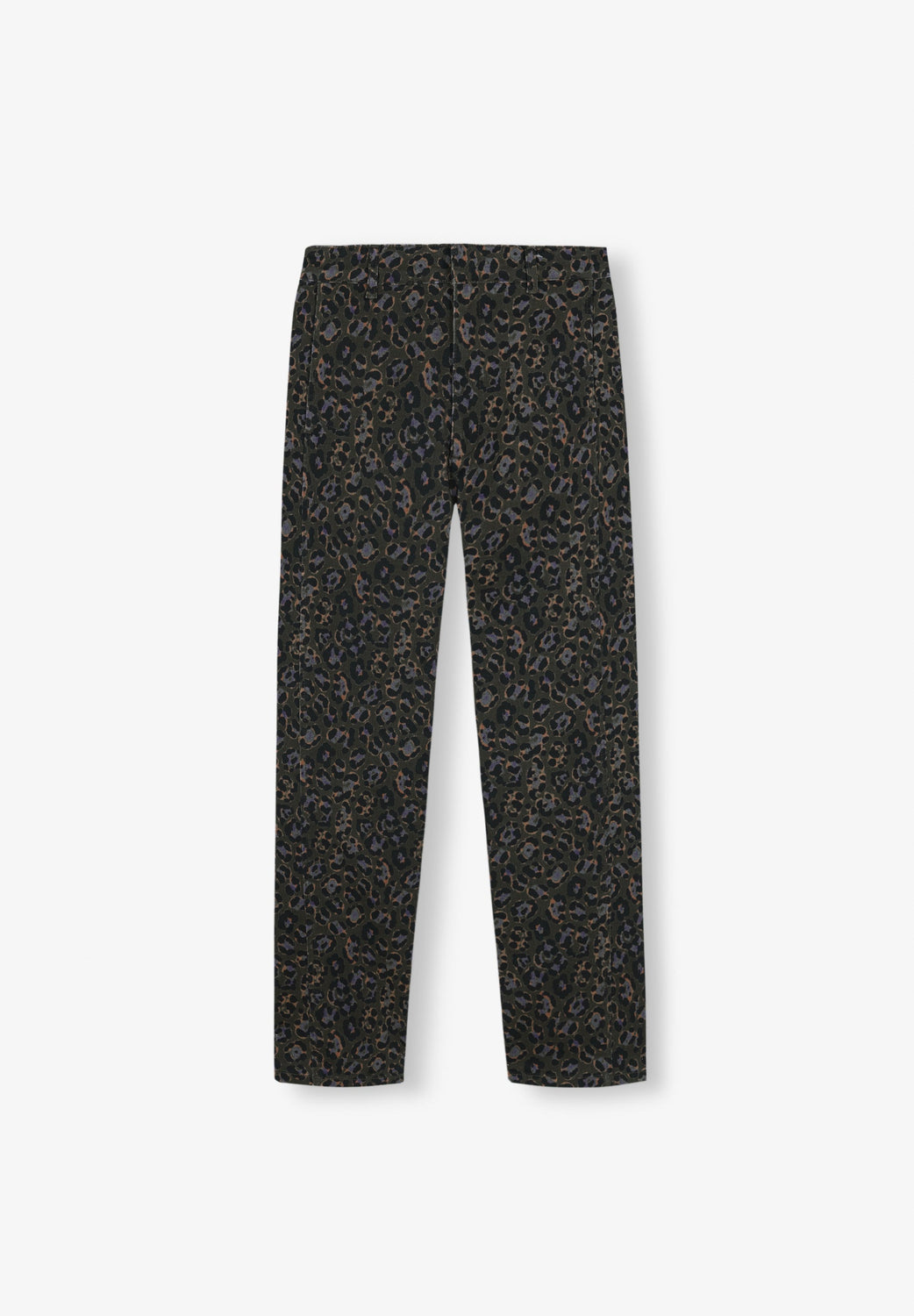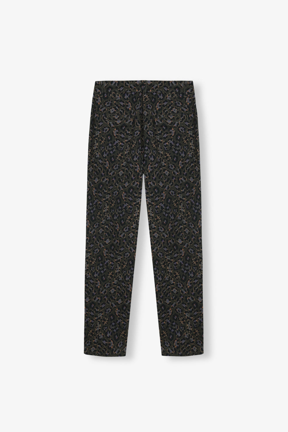 Animal print chino trousers.