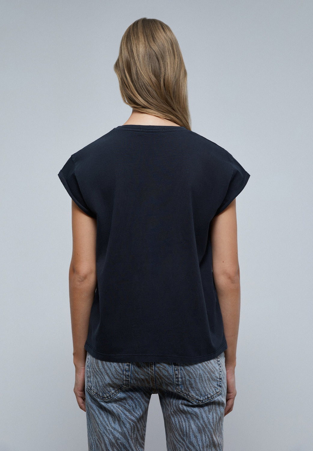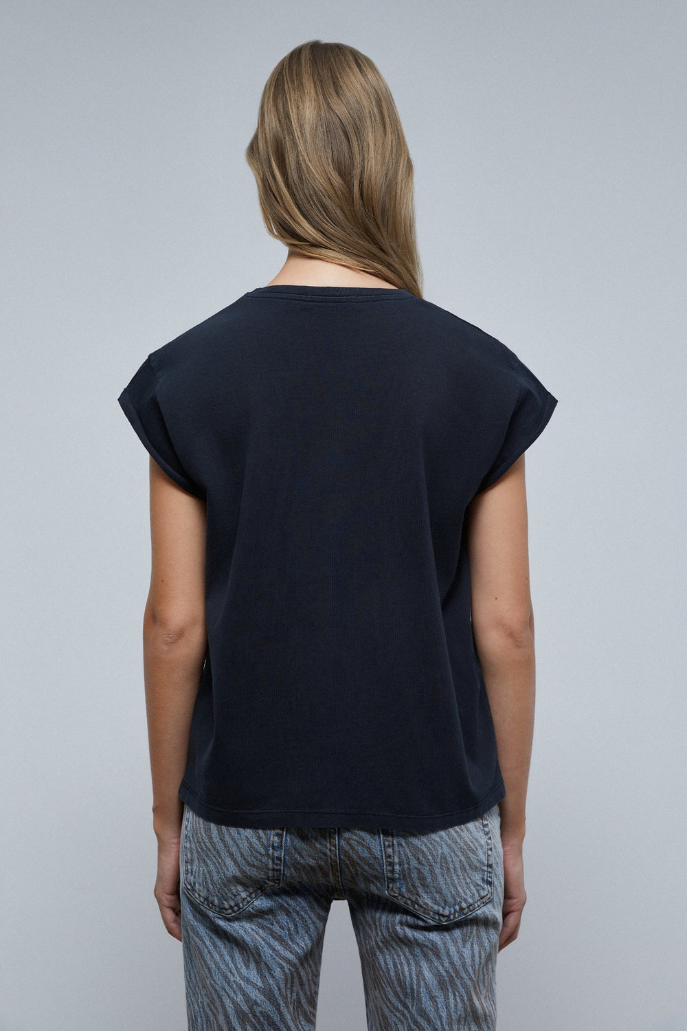 - Slightly frayed hem detail