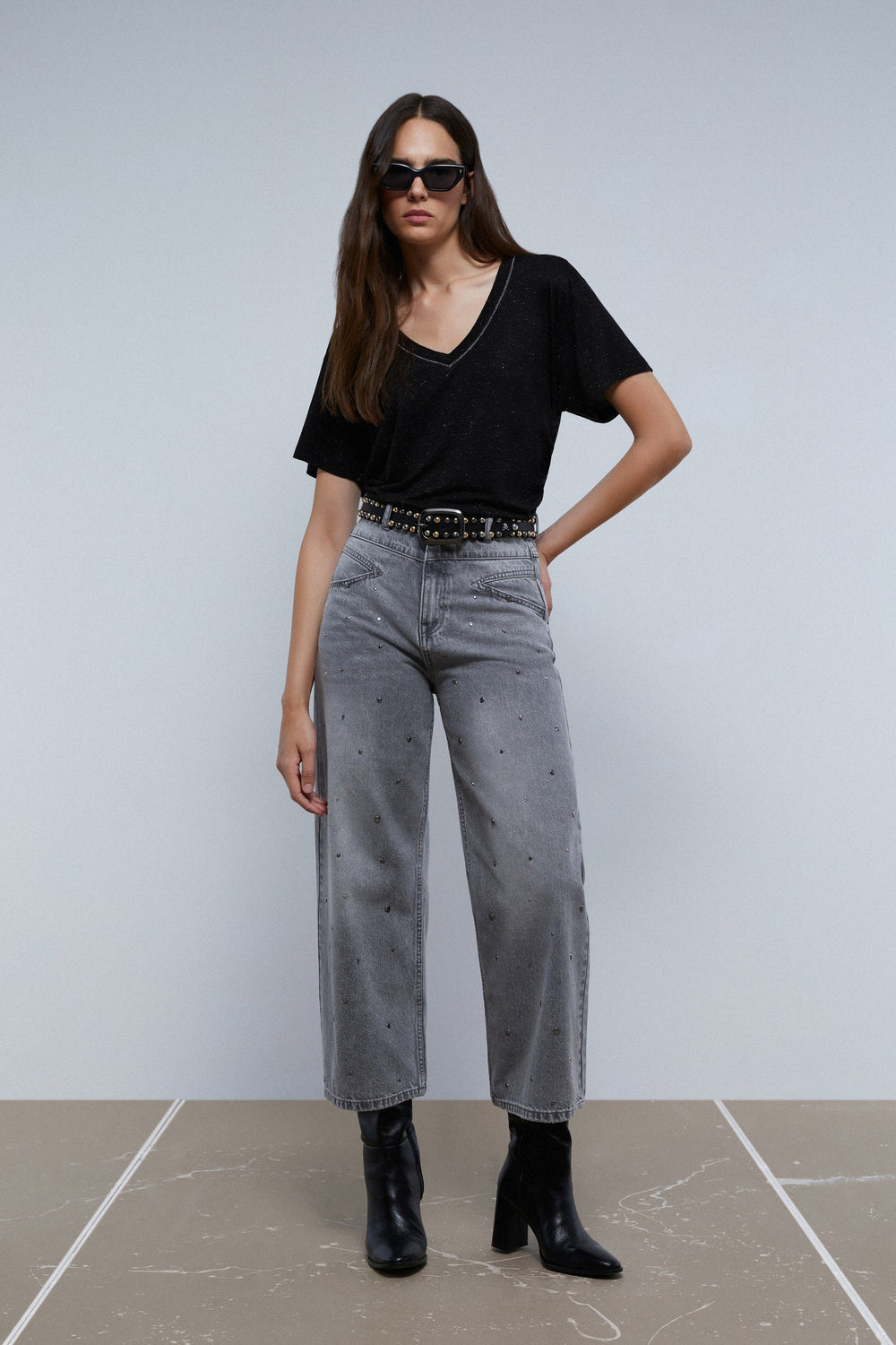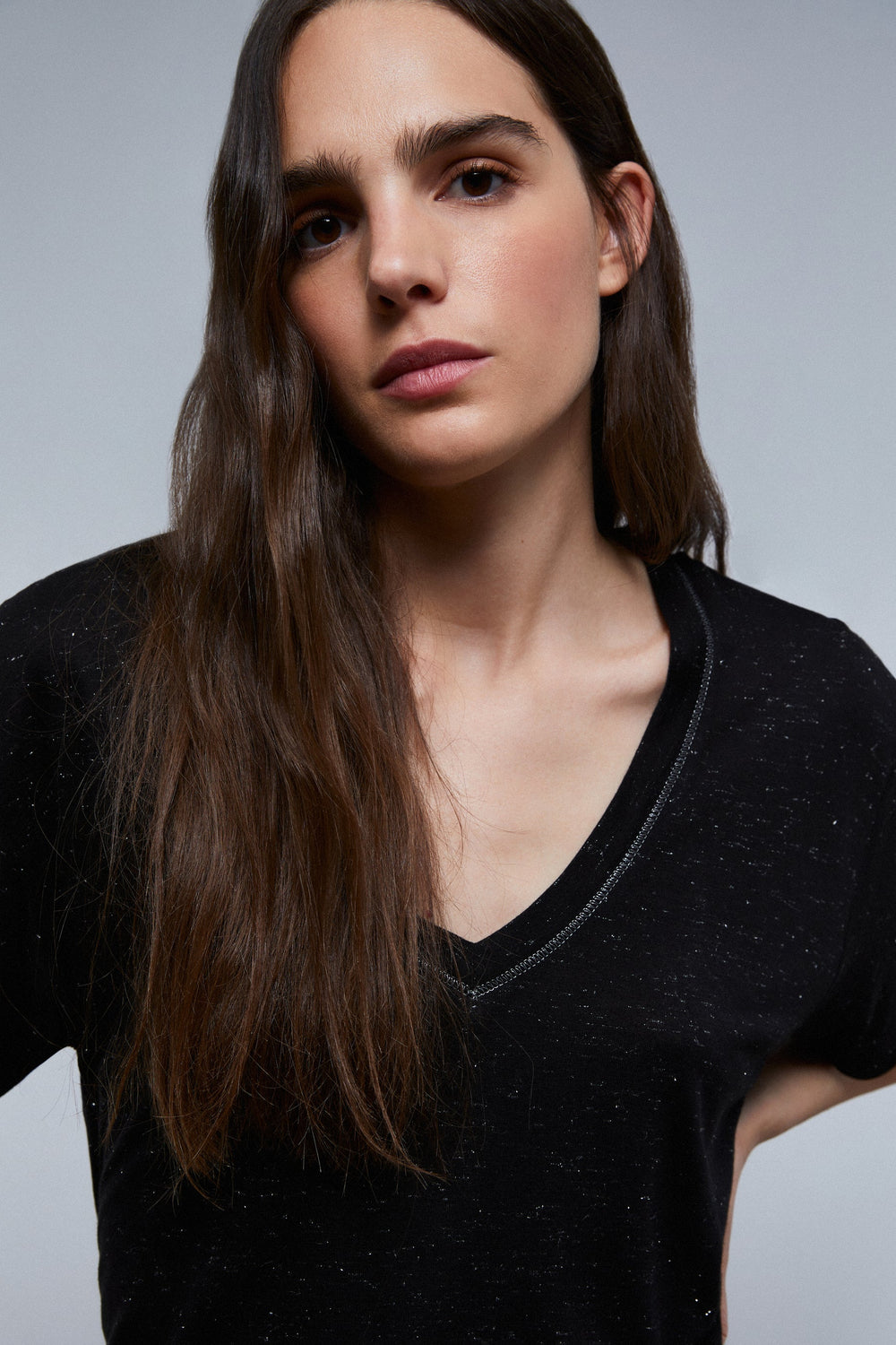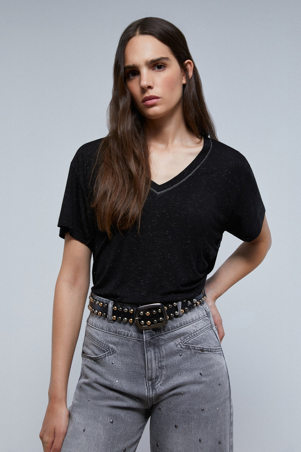 Lurex T-shirt with shirred detail on the side