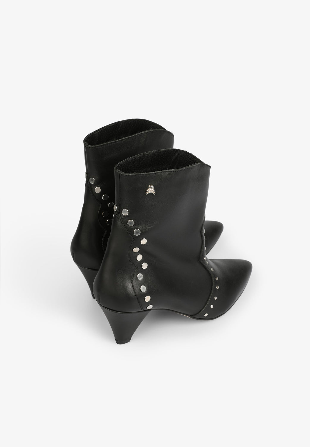 - Metallic skull and stud detail
