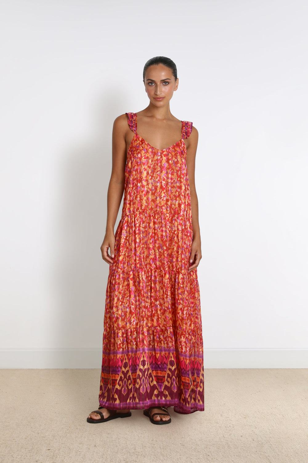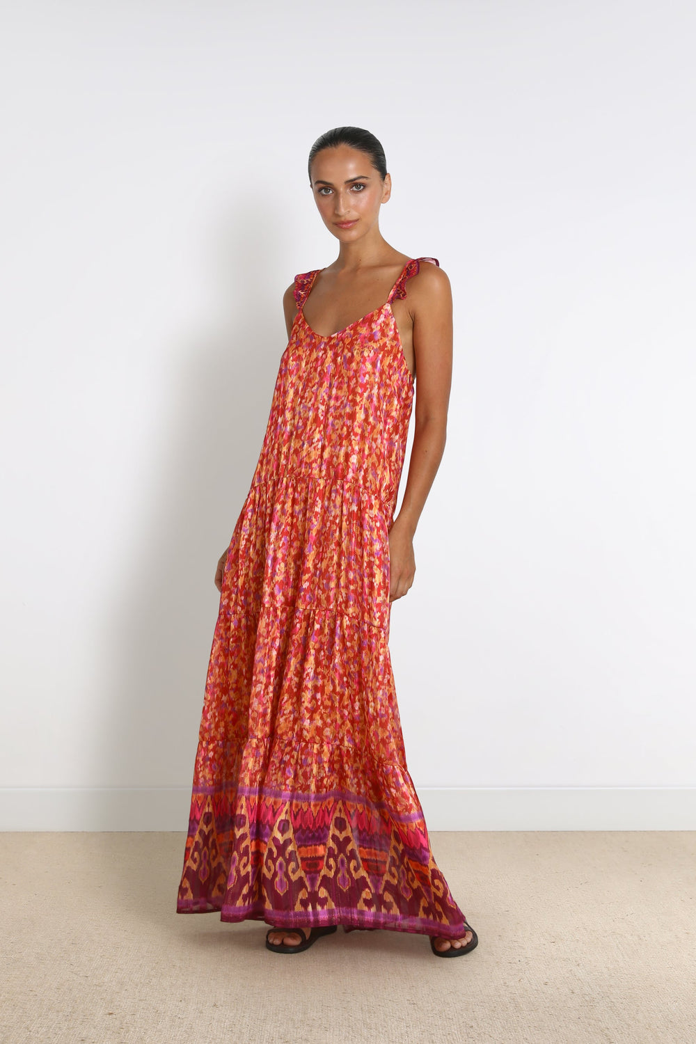 Long printed dress.