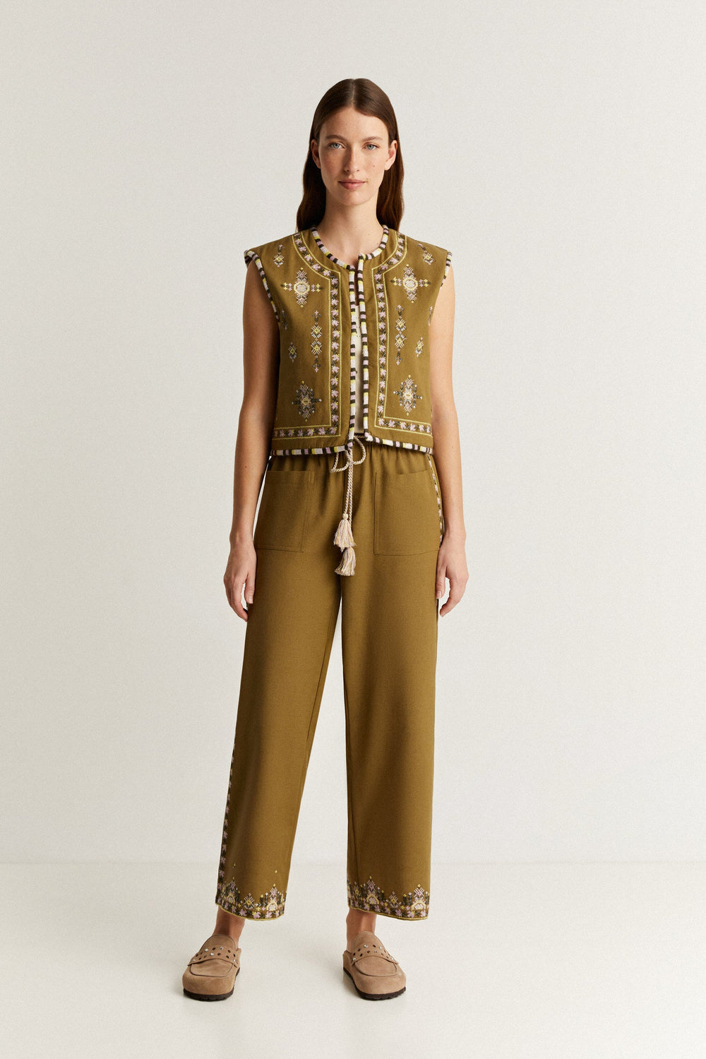 TROUSERS WITH ETHNIC EMBROIDERY DETAIL