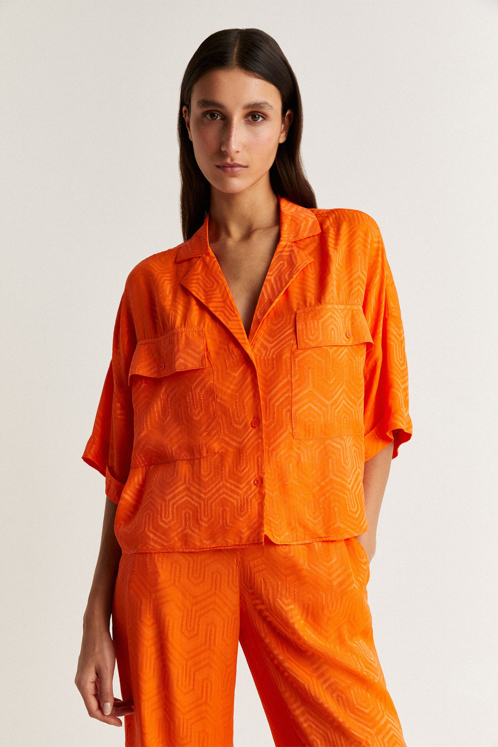 Pyjama shirt with geometric details.