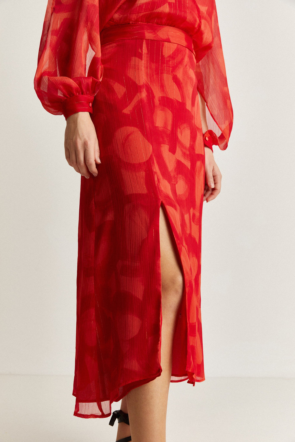FLOWING SKIRT WITH SLIT AND LUREX