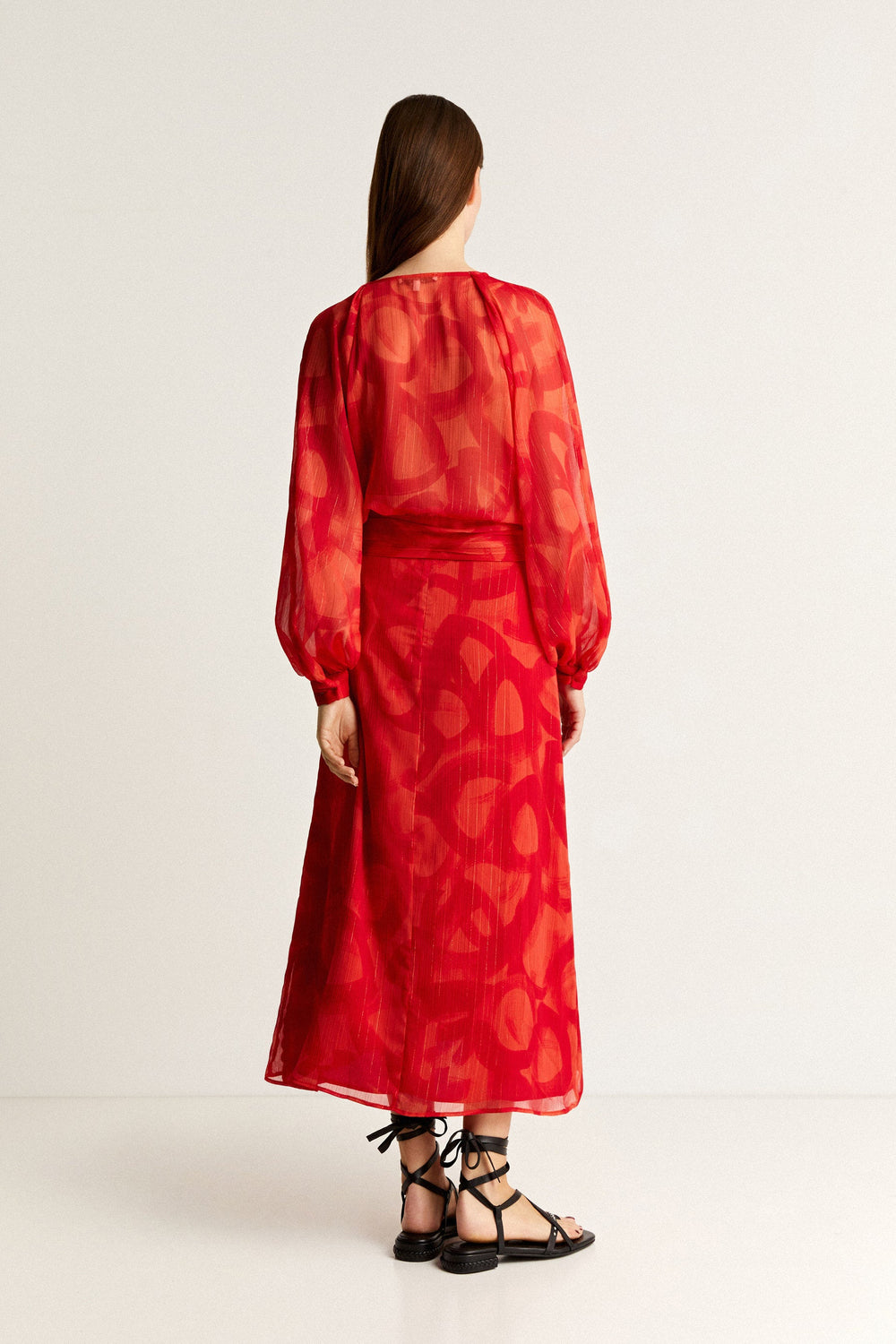 - Made of flowing fabric with metallic yarn detailing