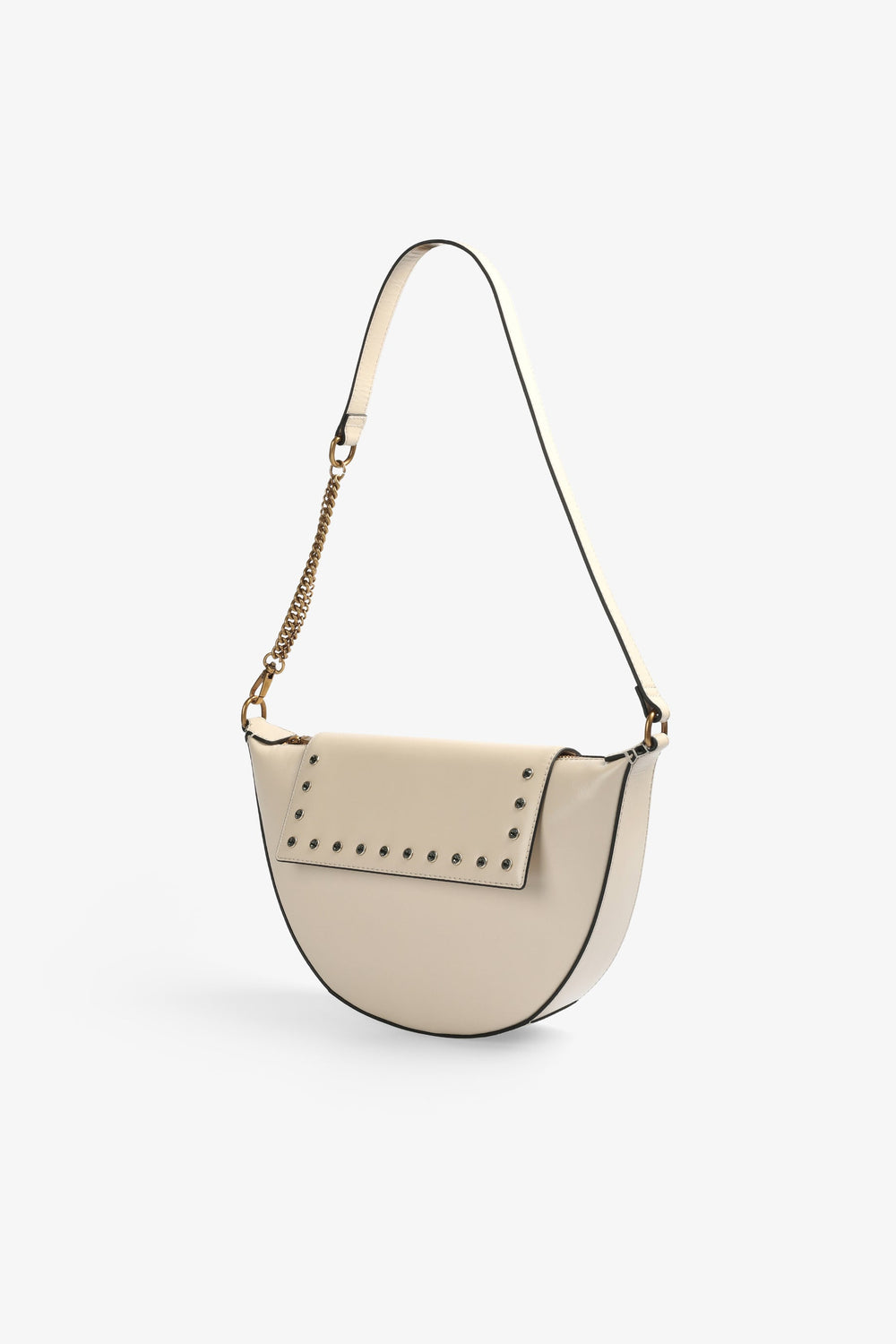 HALF-MOON LEATHER BAG WITH RHINESTONES