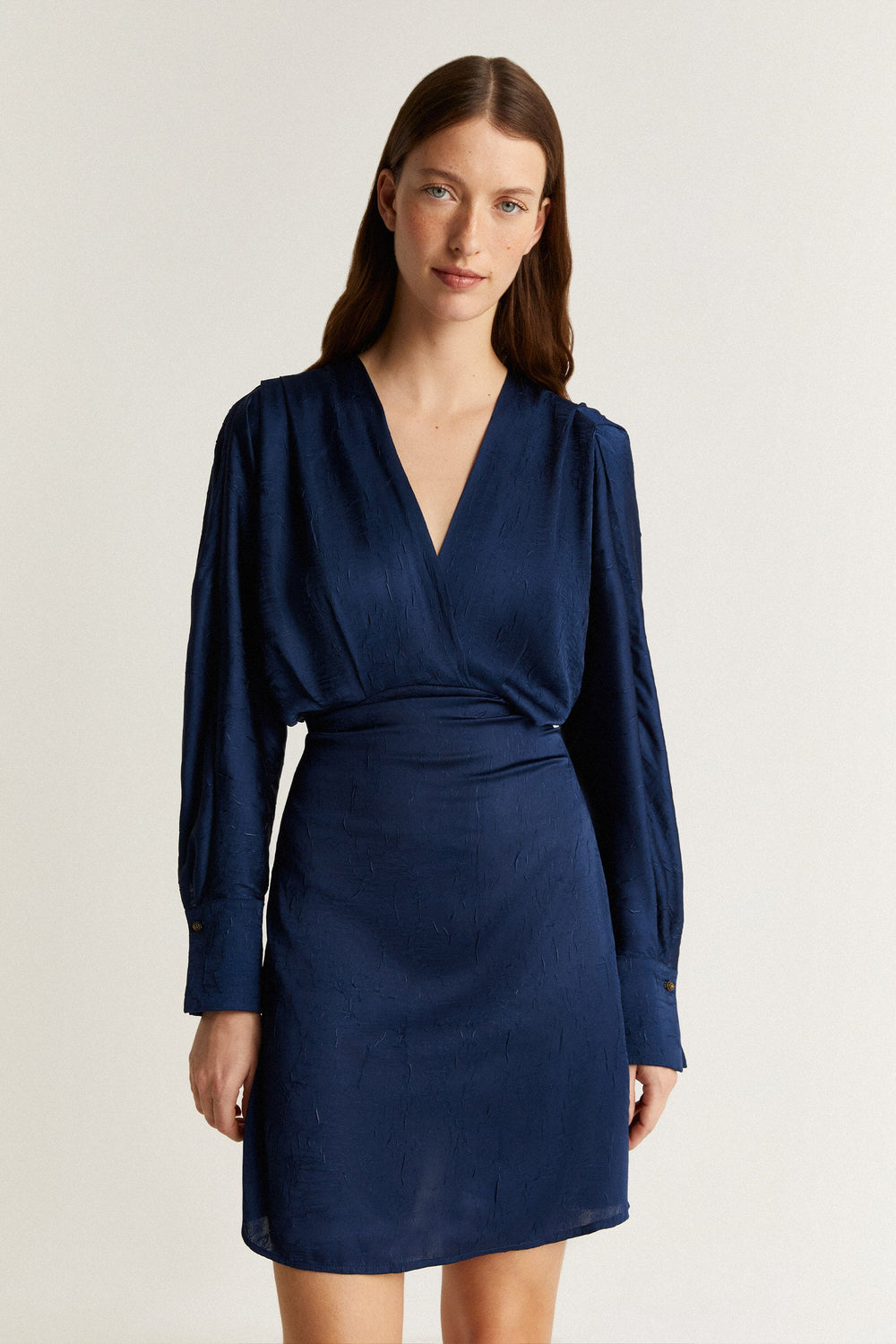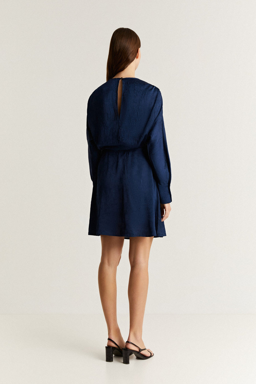 Mini dress in crinkle effect satin.