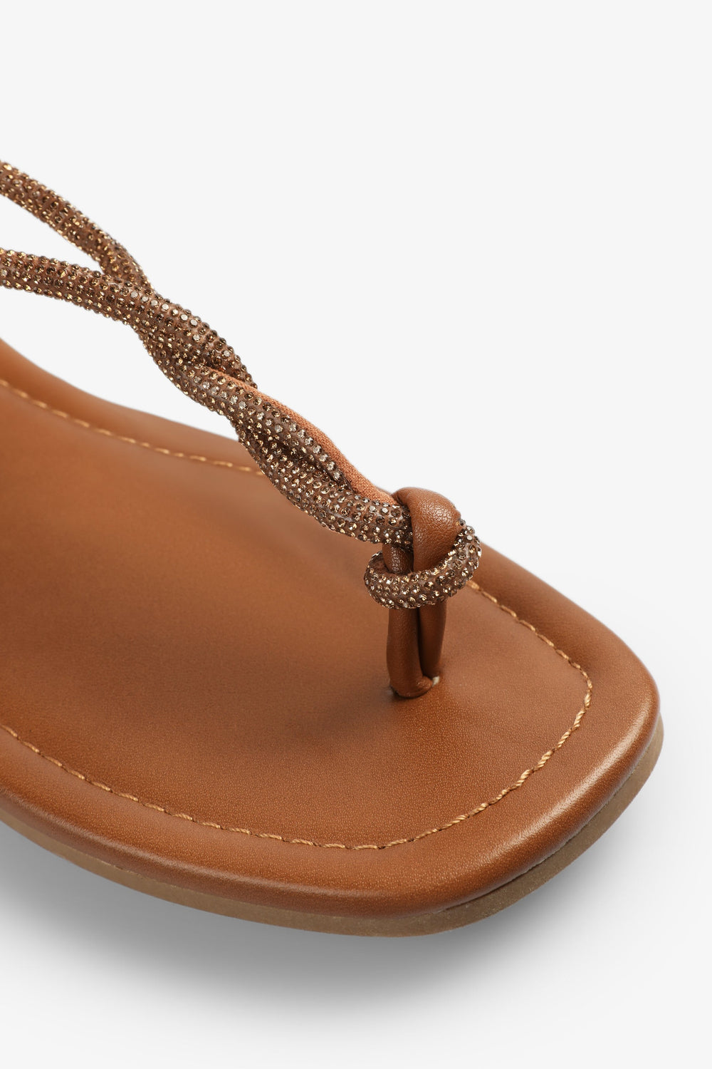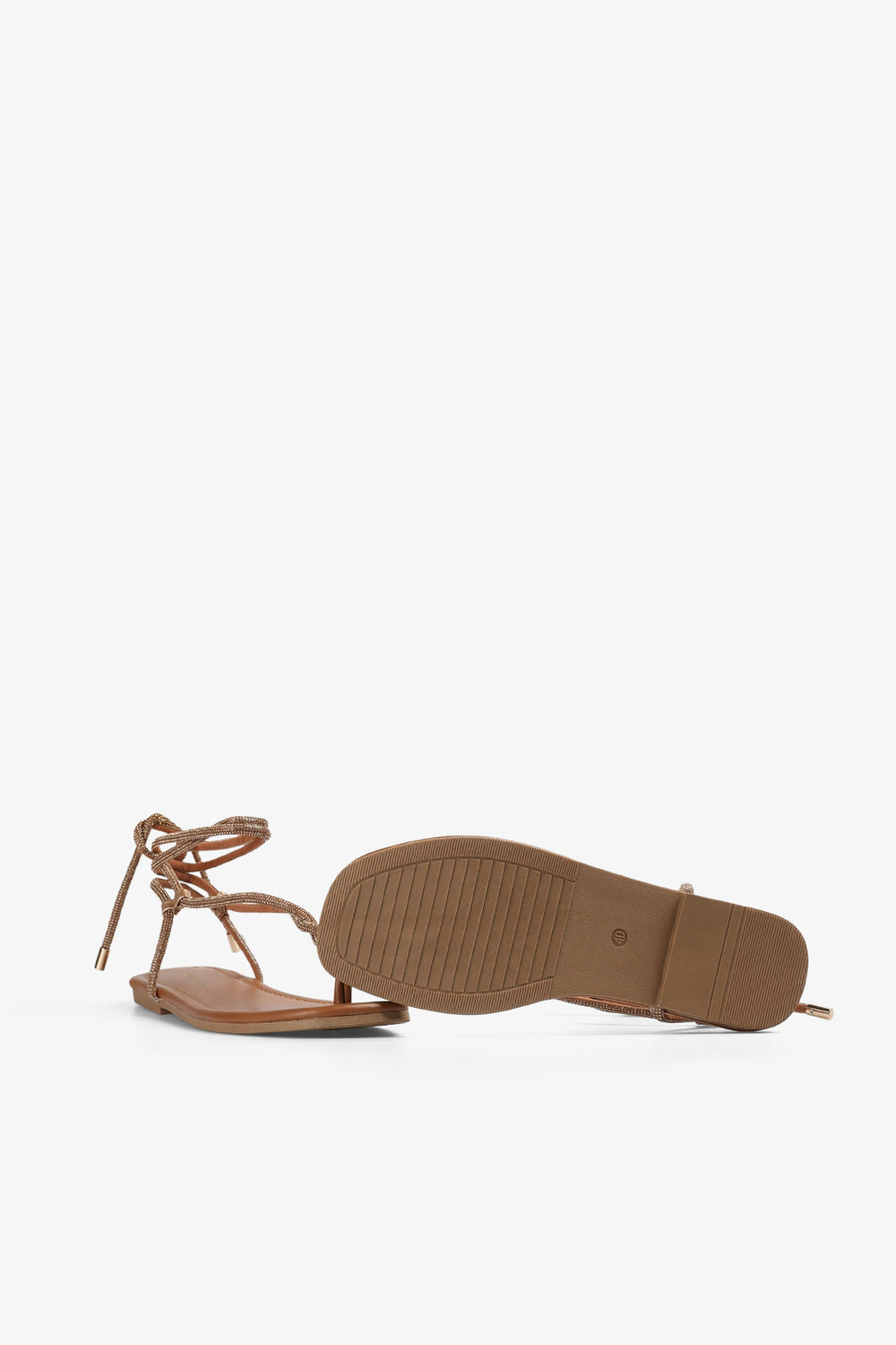 LEATHER SANDALS WITH STRAPS AND RHINESTONE DETAIL