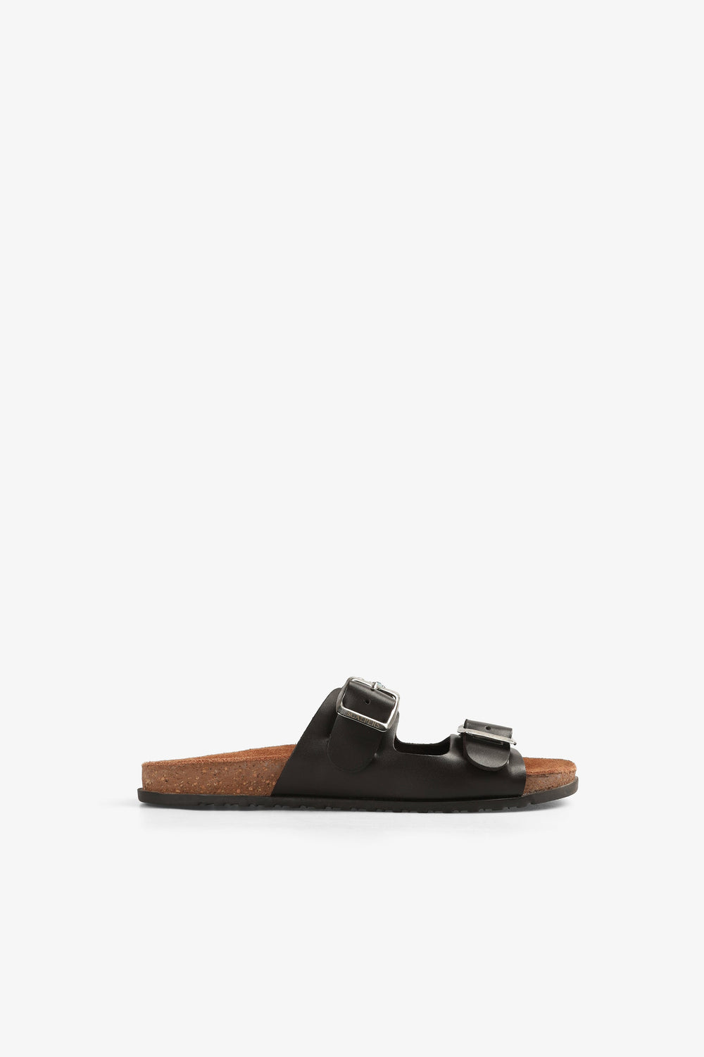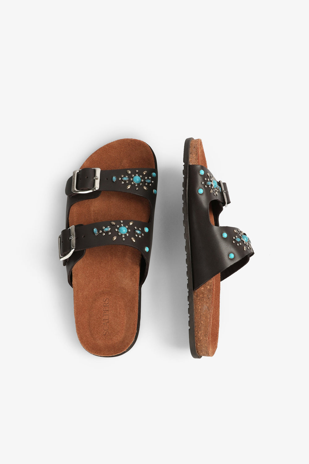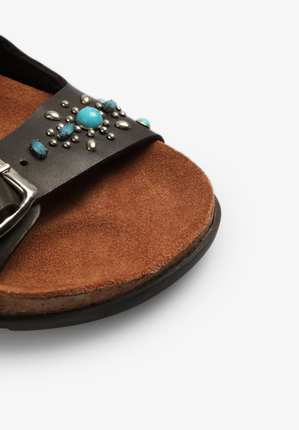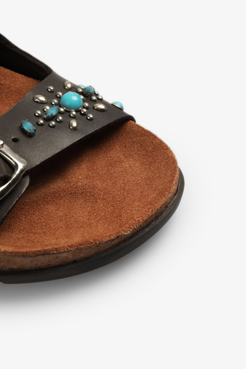 LEATHER SANDALS WITH BUCKLE AND STUDS