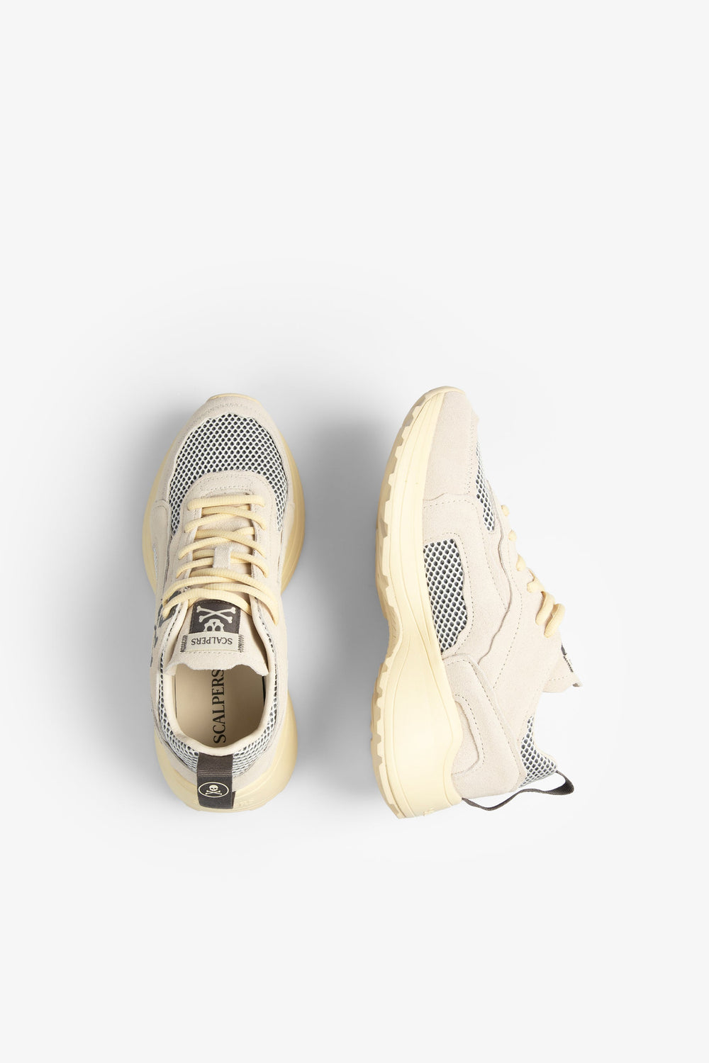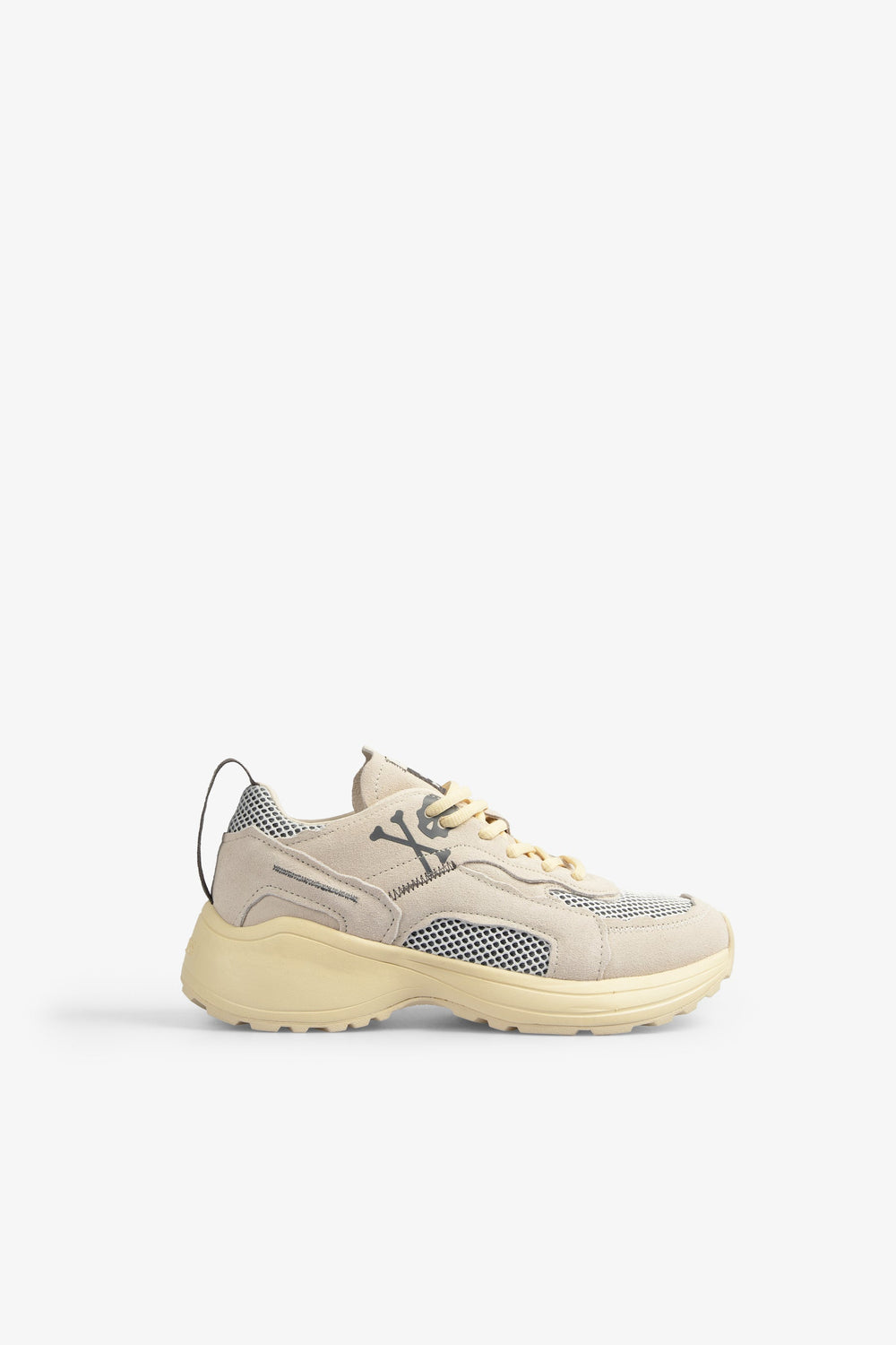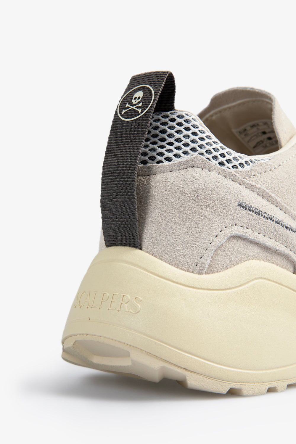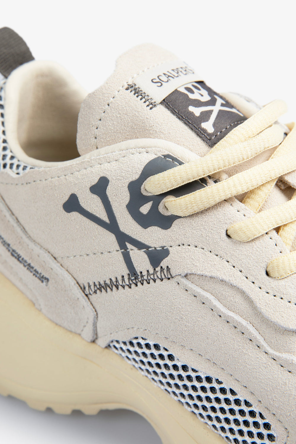 Track sole sneakers with side skull detail. Made of suede and mesh. Matching lace-up fastening. Recycled rubber track sole. Heel pull tab.