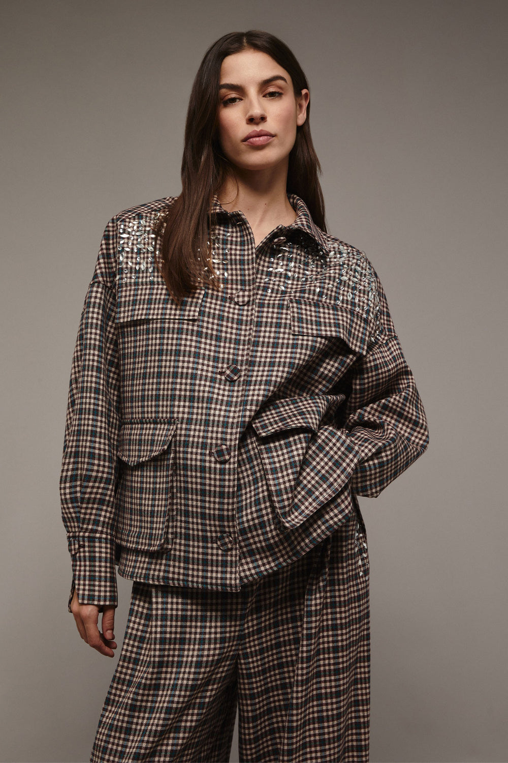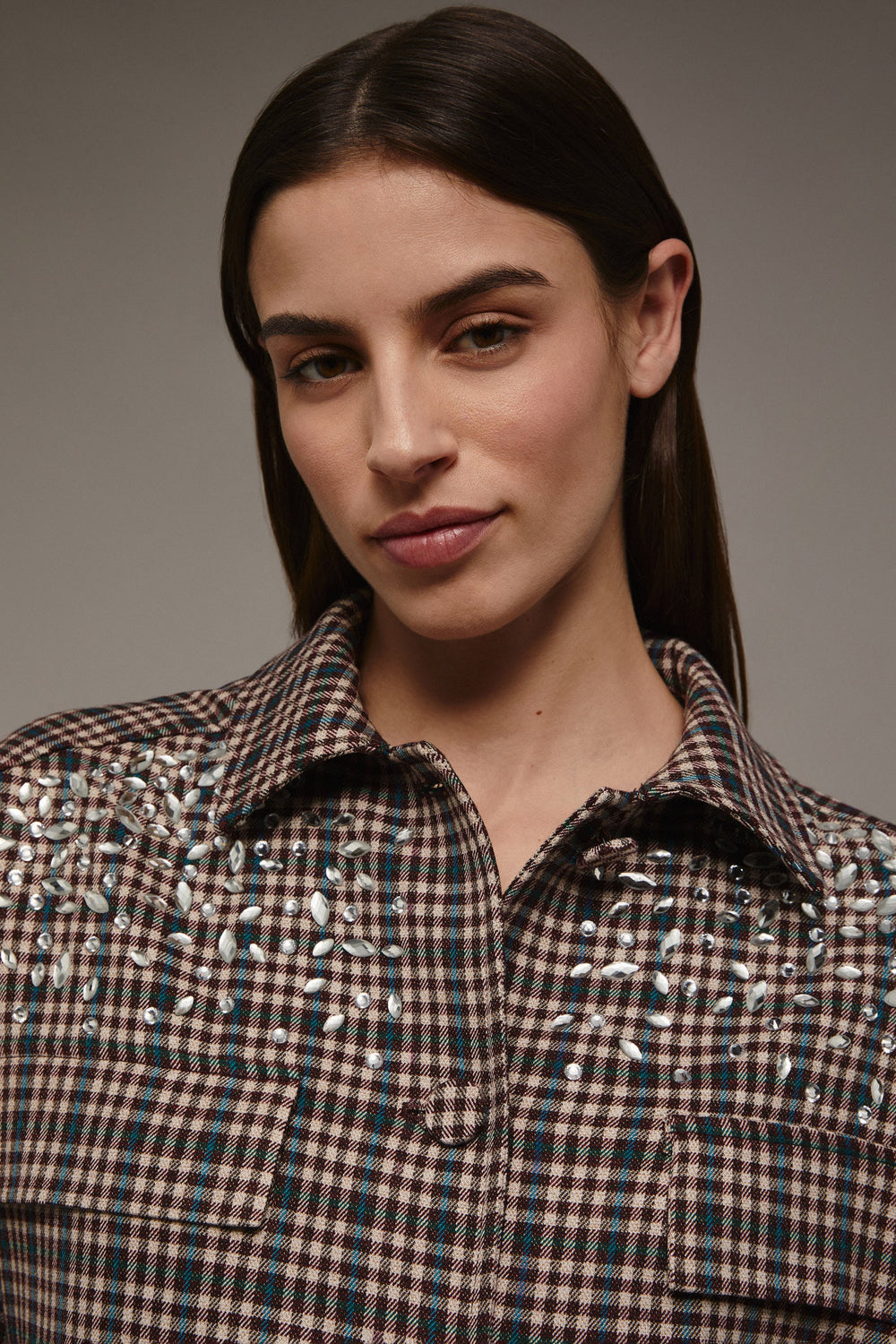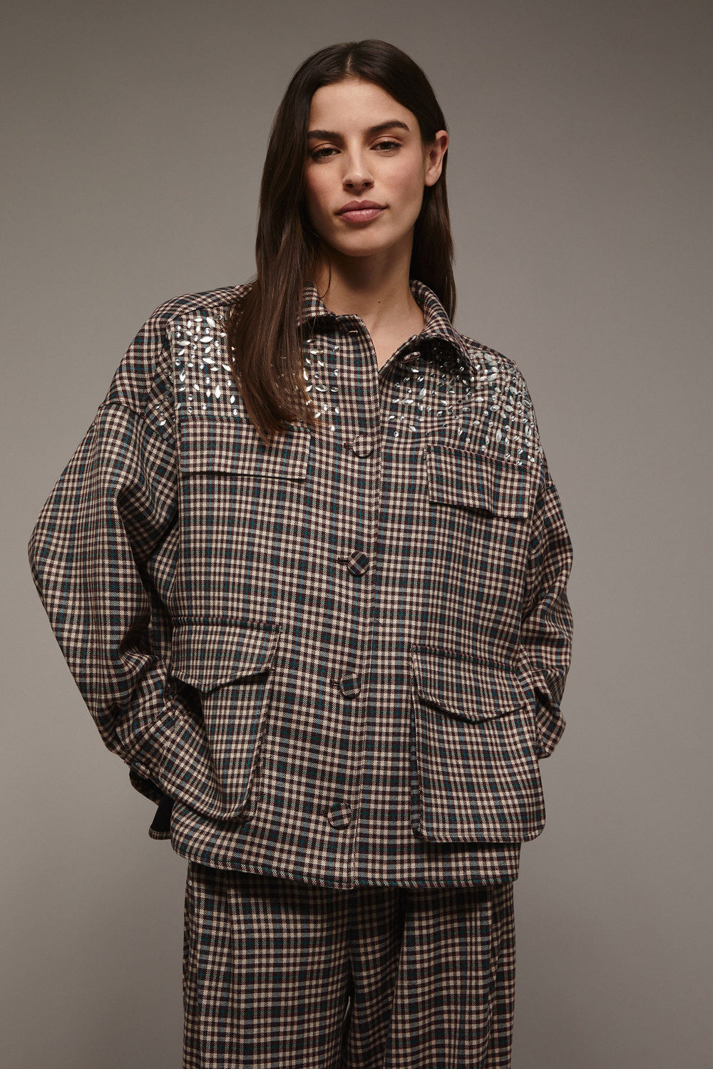 QUILTED CARDIGAN WITH GLASS ON THE POCKETS