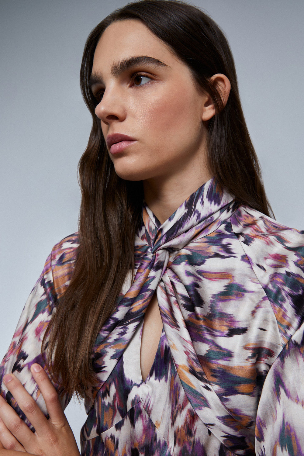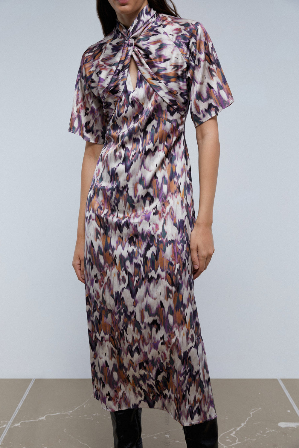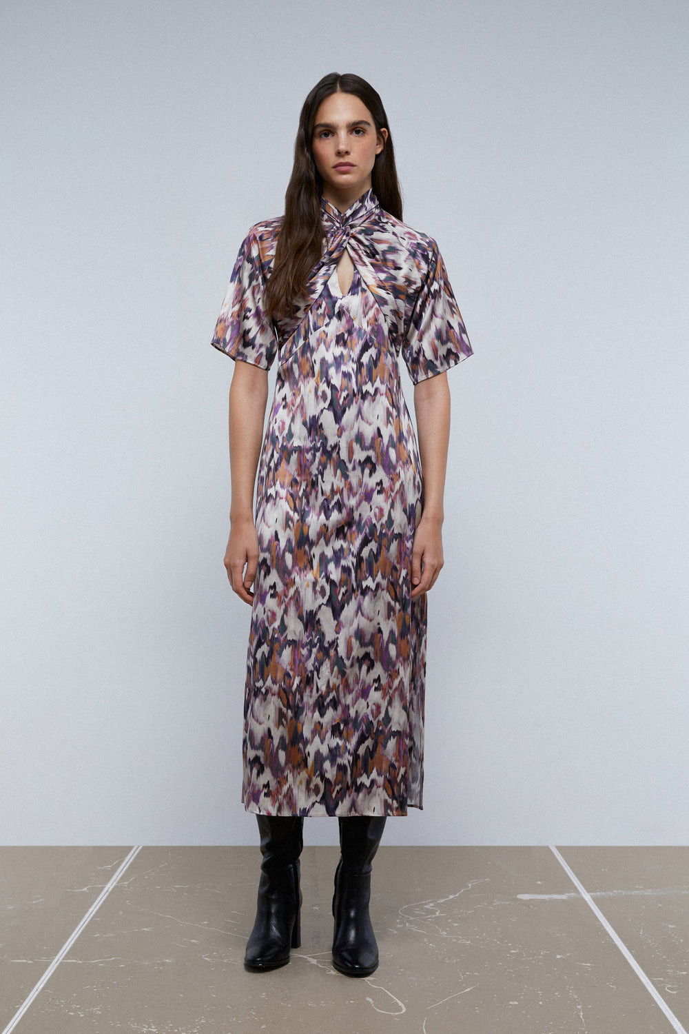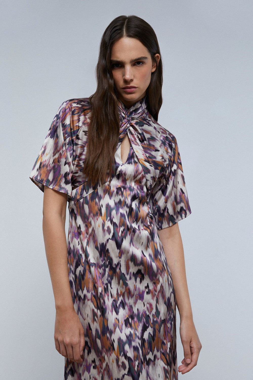 PRINT DRESS WITH KNOT ON THE NECKLINE