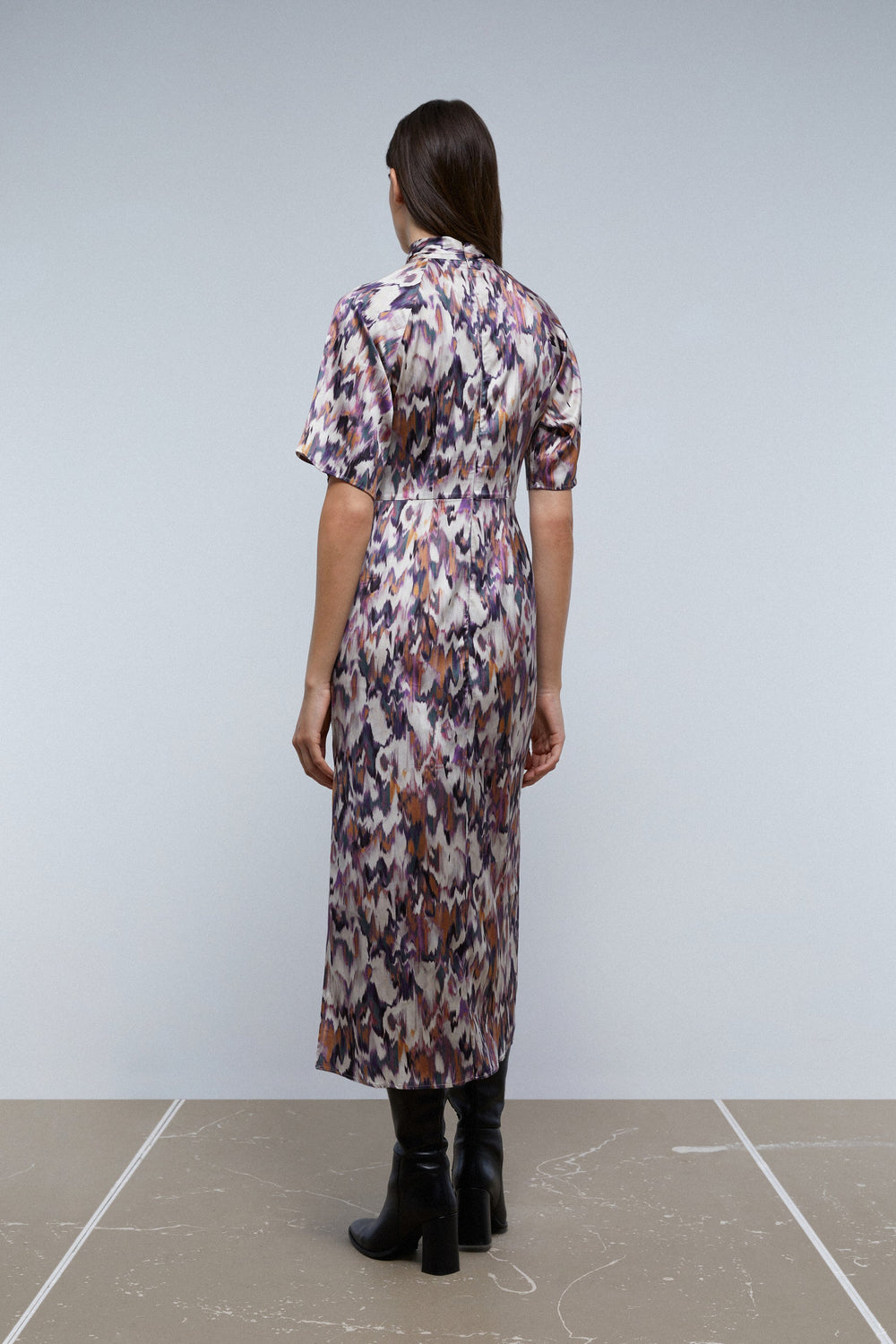 Midi dress with multicoloured print.