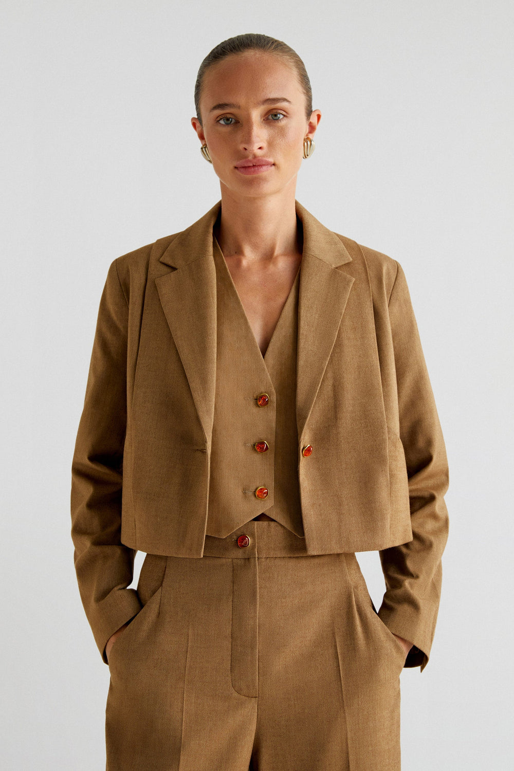 CARAMEL BUTTON BLAZER
