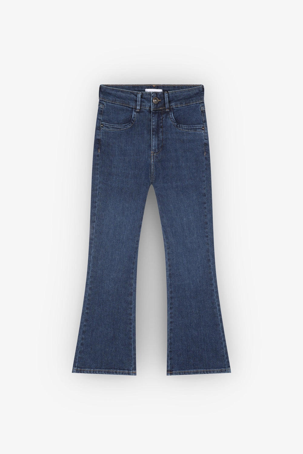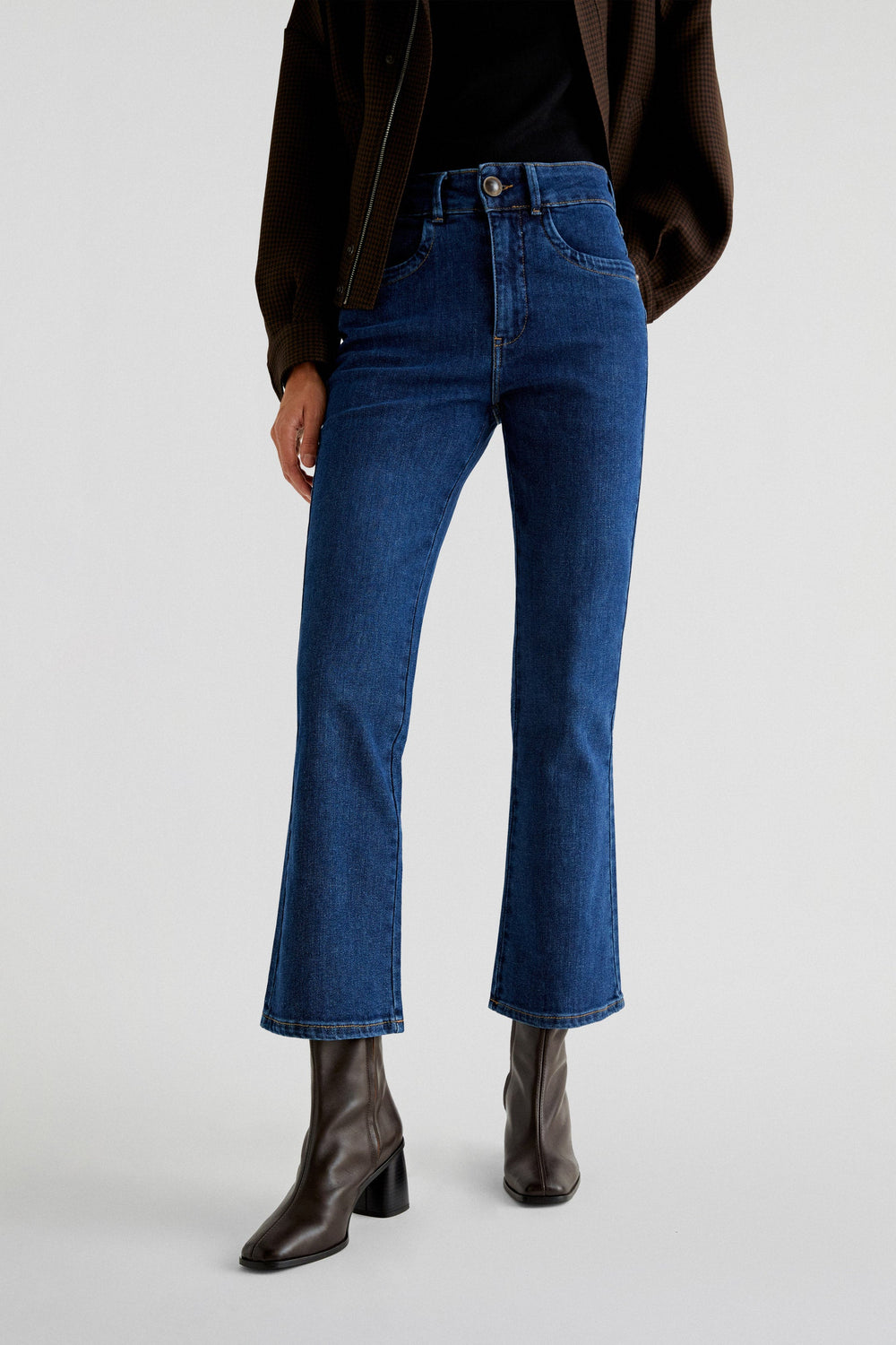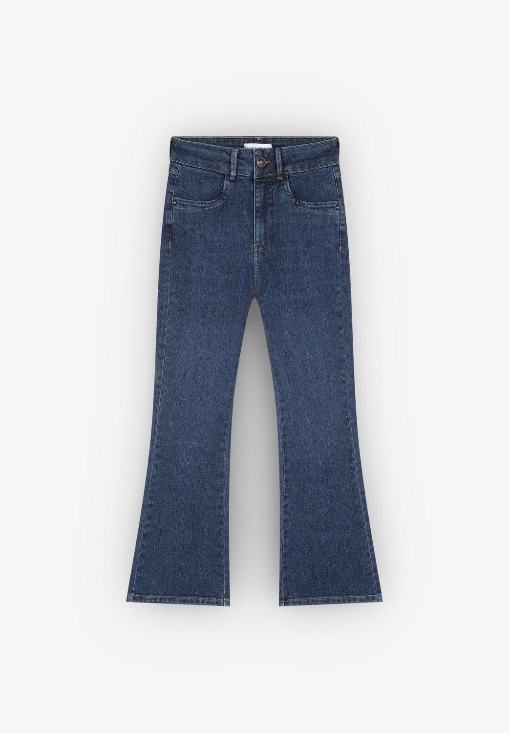 Jeans made from slightly stretchy cotton. Ankle flare fit with zip and button fastening. Back and side pockets and belt loops.