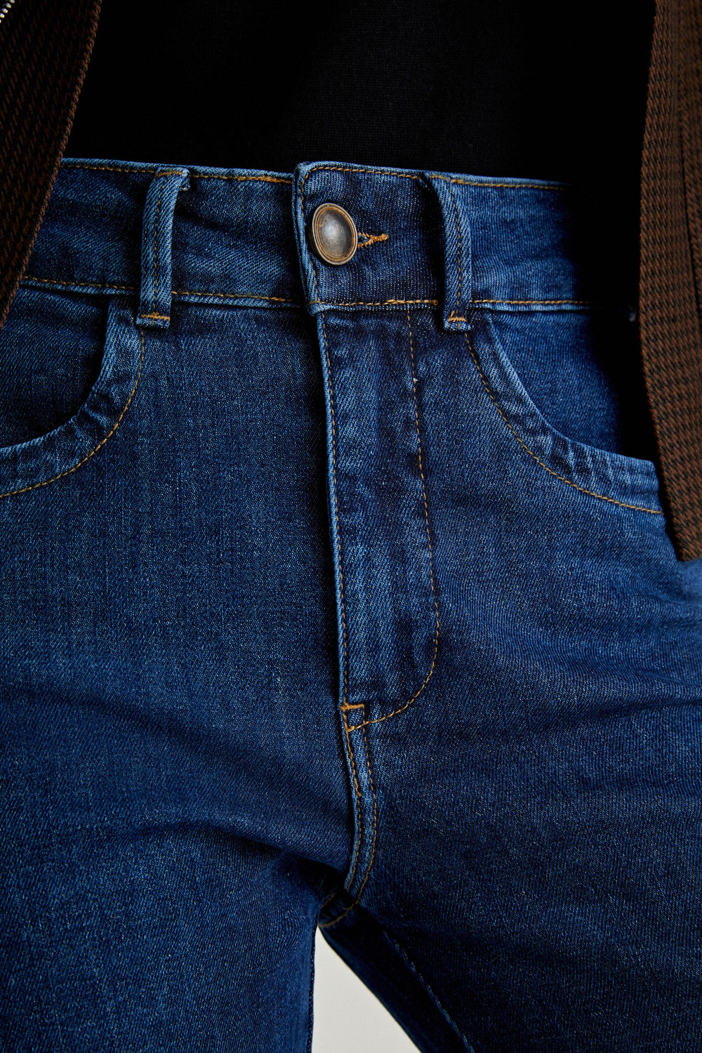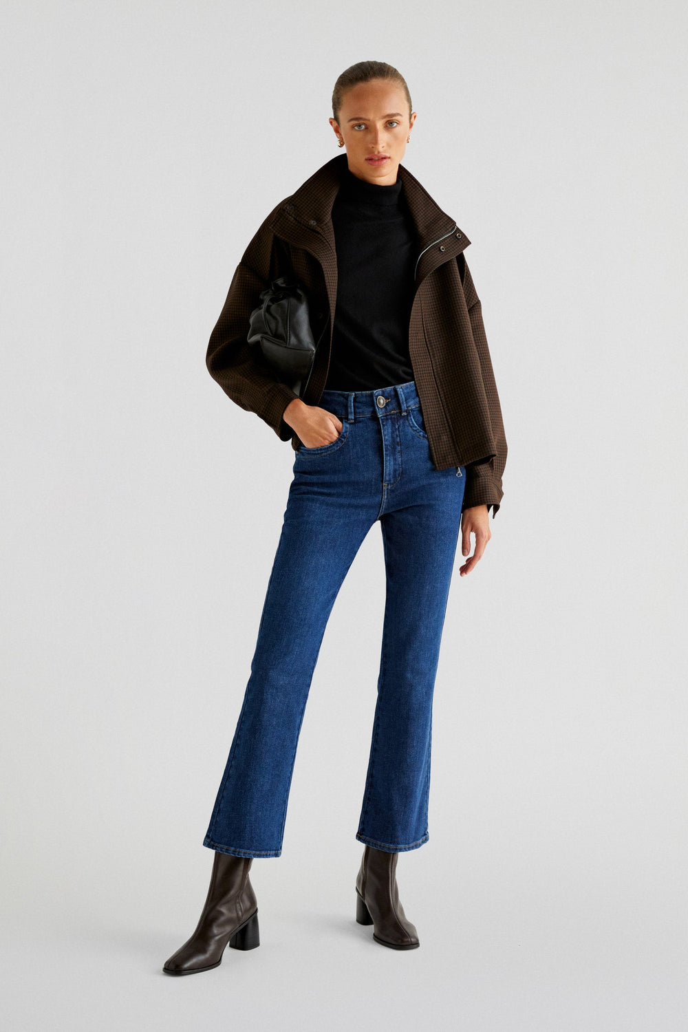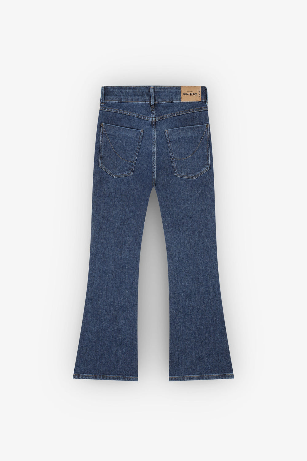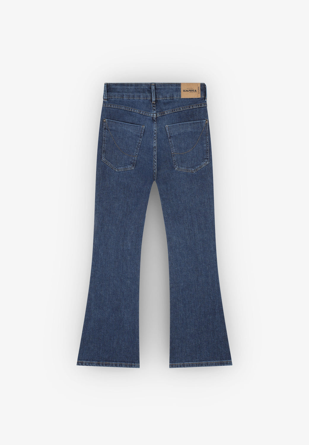 Jeans made from slightly stretchy cotton. Ankle flare fit with zip and button fastening. Back and side pockets and belt loops.