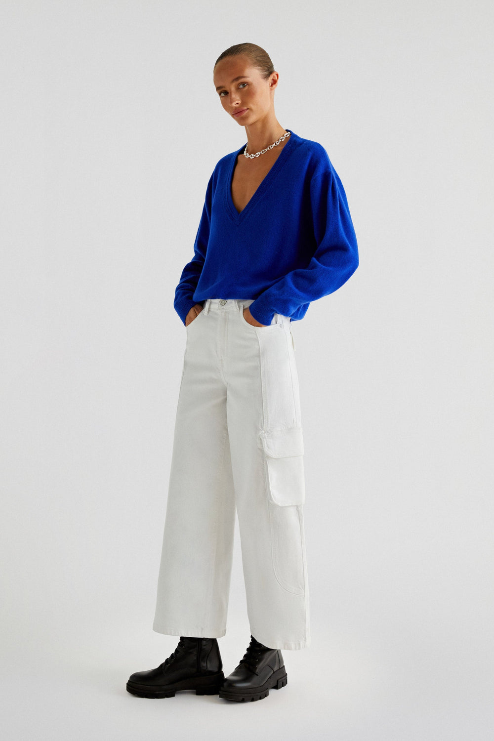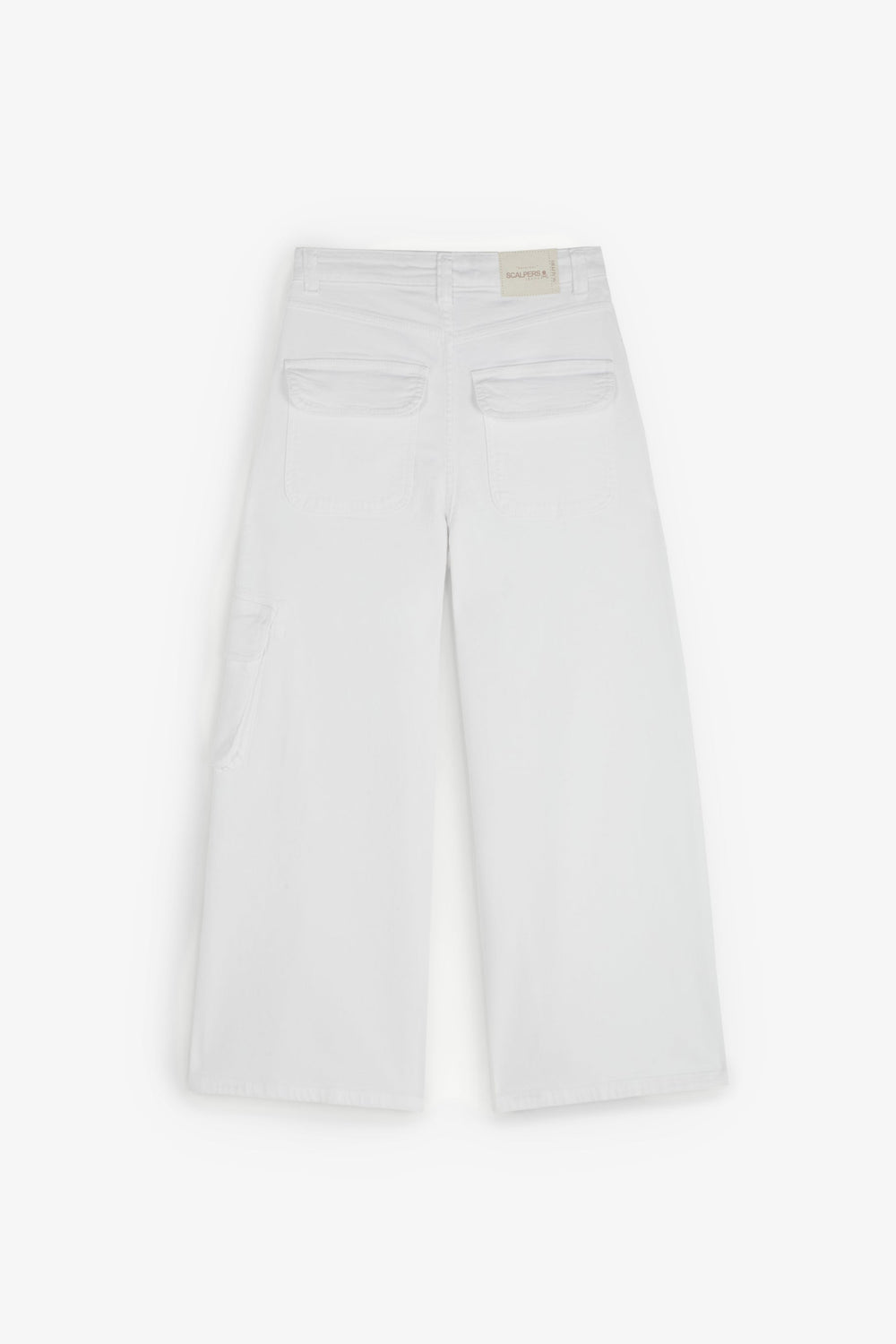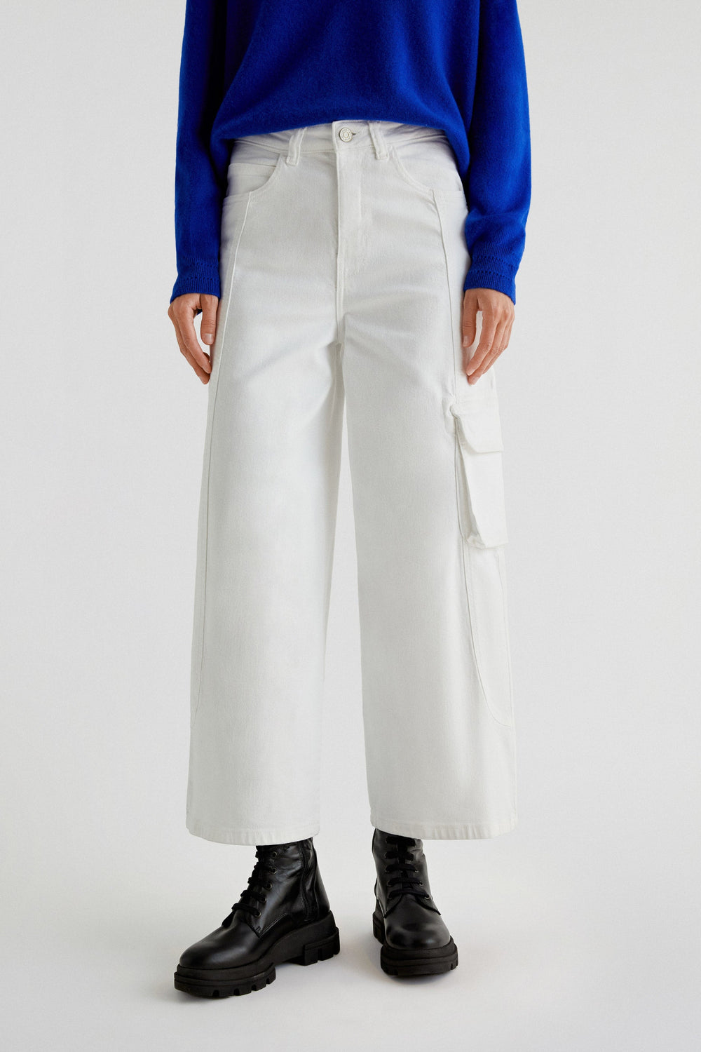 Cargo jeans made from slightly stretchy cotton. Relaxed fit culotte cut with zip and button fastening. Pockets and belt loops.