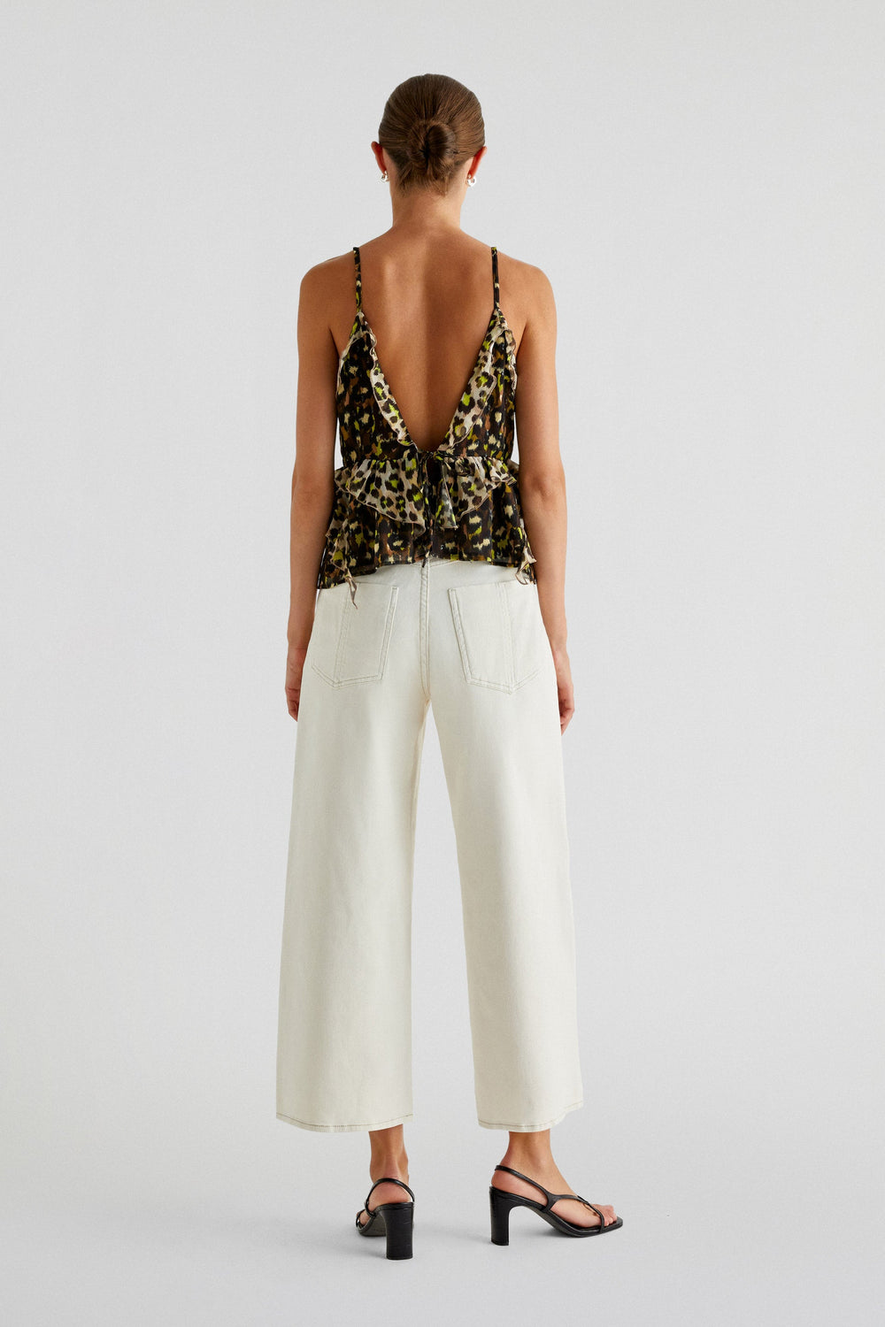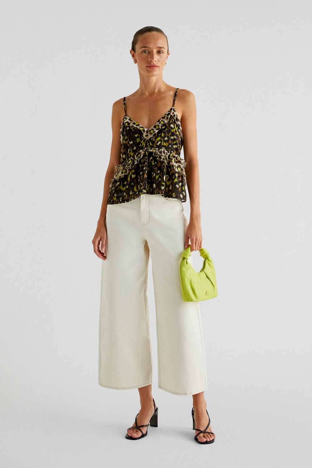 Culotte jeans made from slightly stretchy cotton. Slim fit with a high waist and zip fastening with a hook and eye. Front pockets and detailed back pocket.