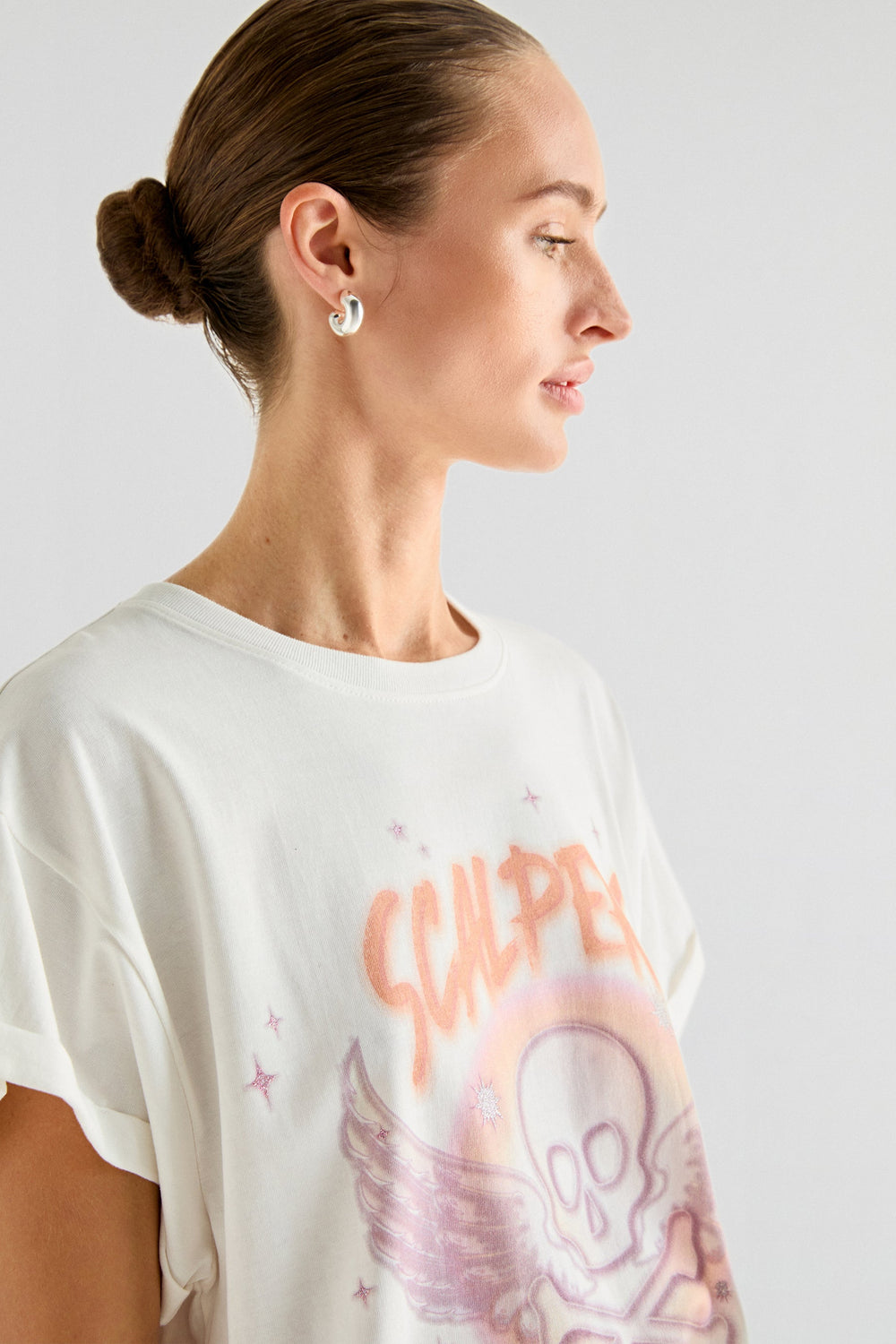 T-shirt made of 100% BCI cotton. Regular fit, round neck and short sleeves. Festival-style front and back print.