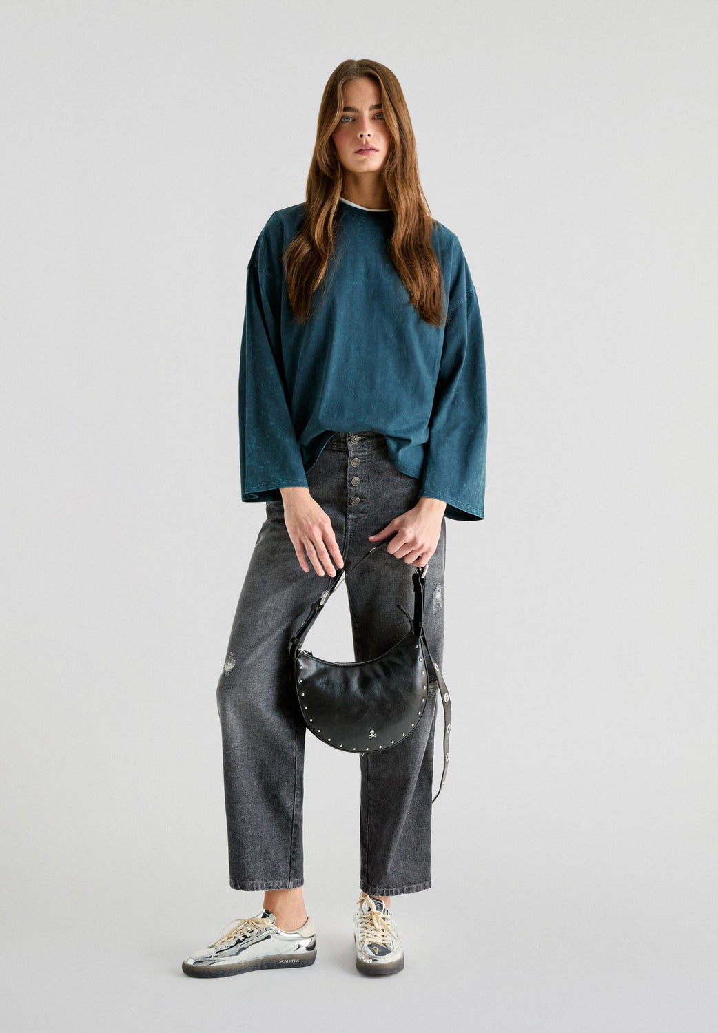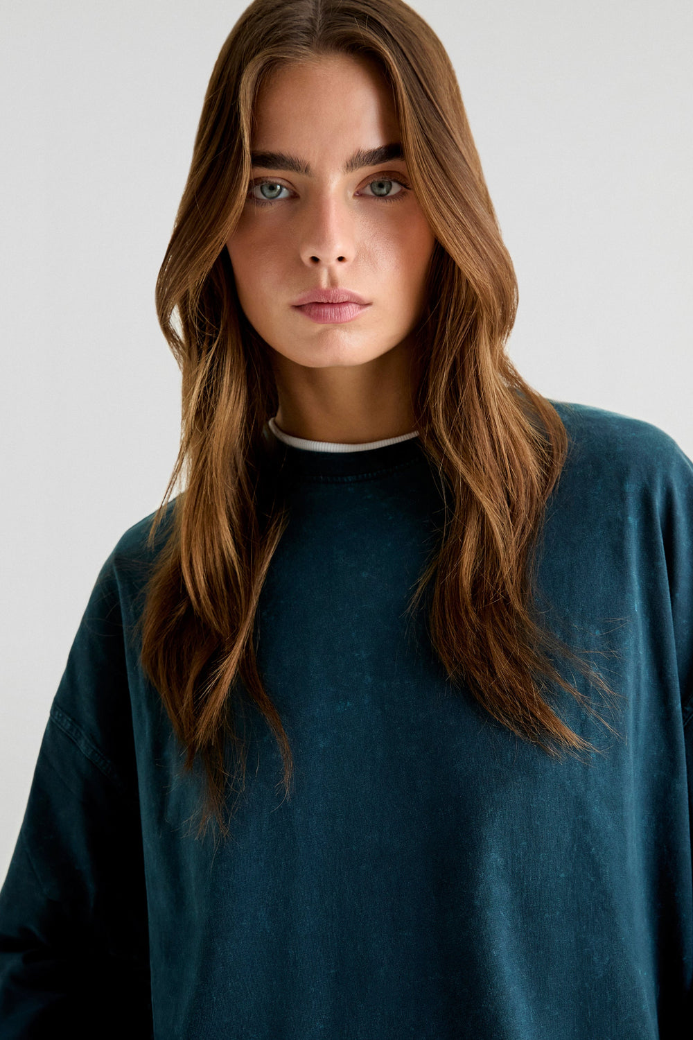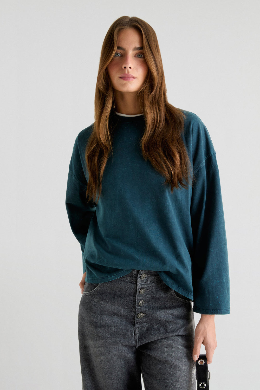 Faded T-shirt made of 100% BCI cotton. Slightly oversize fit, round neck and long sleeves. Back stud skull.