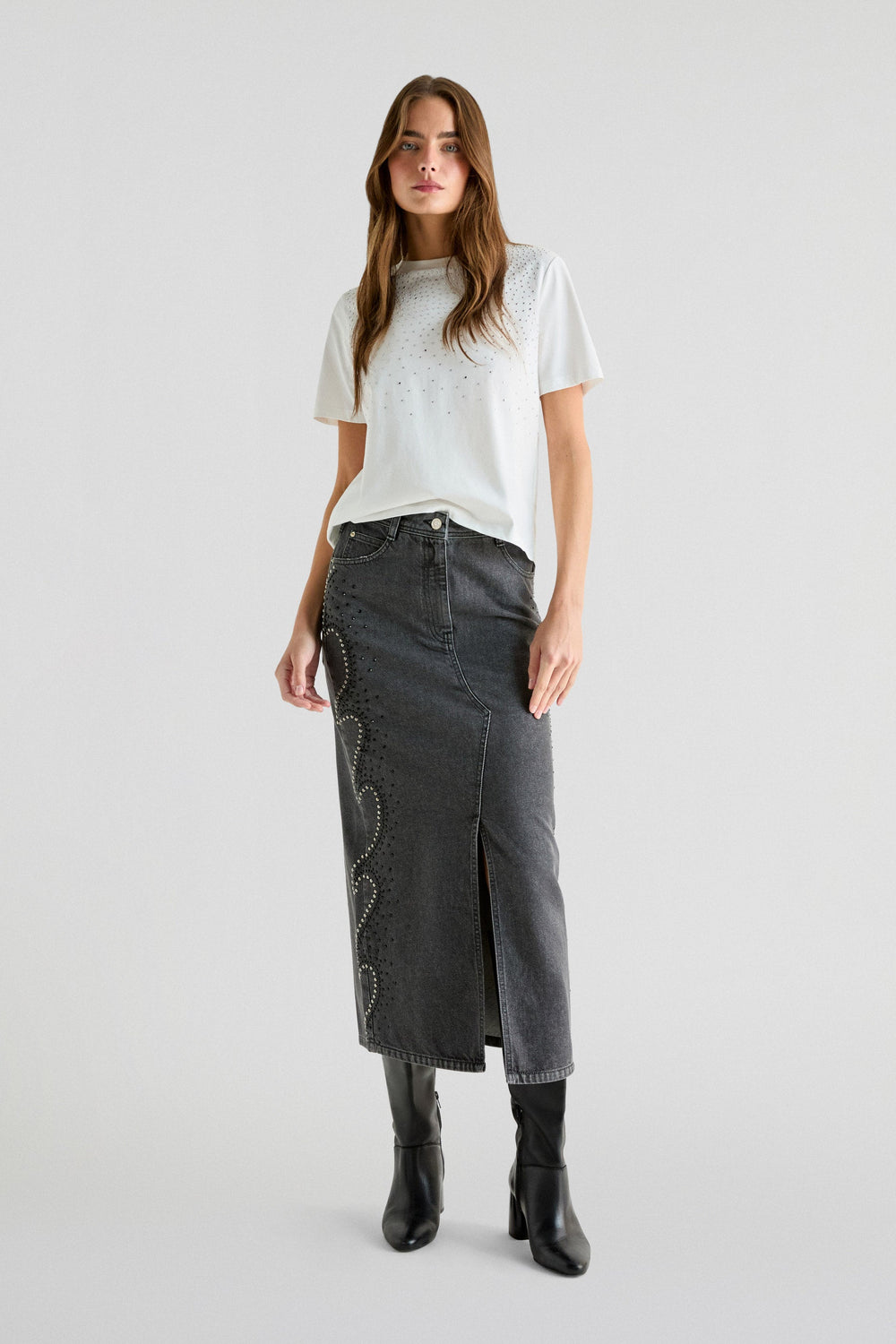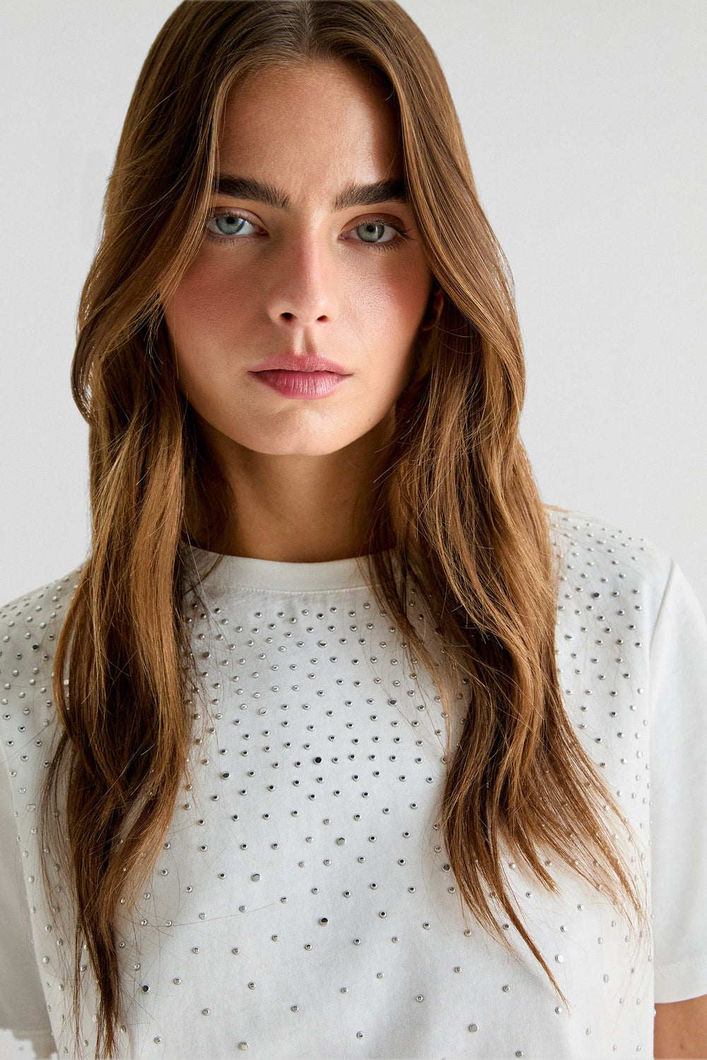 T-shirt with all-over studs, made of 100% cotton. Regular fit, round neck and short sleeves.