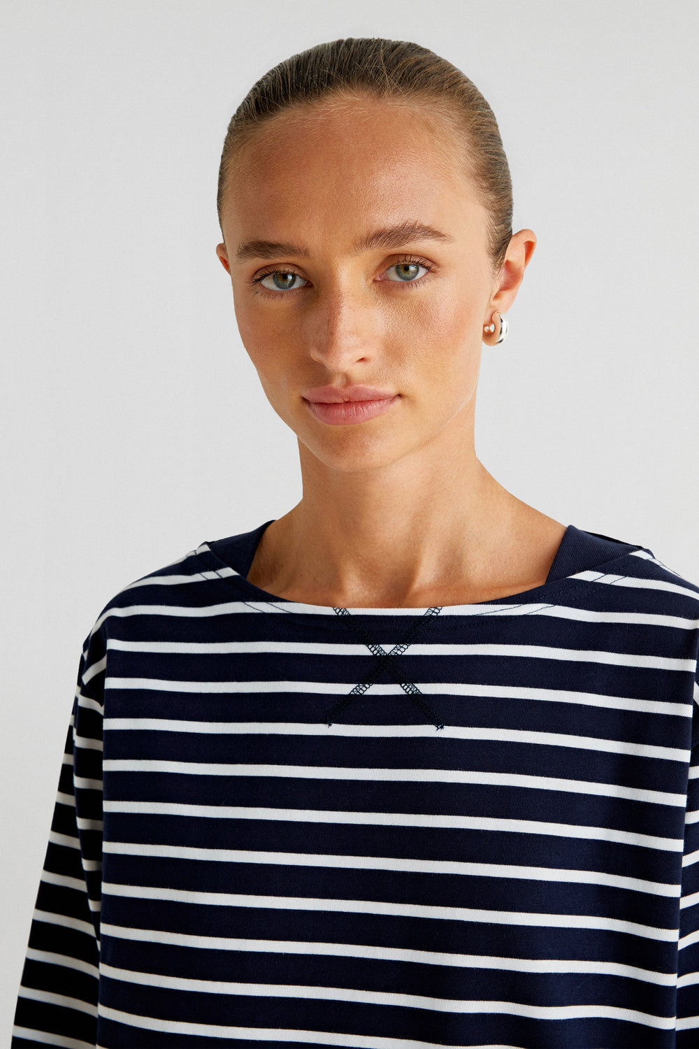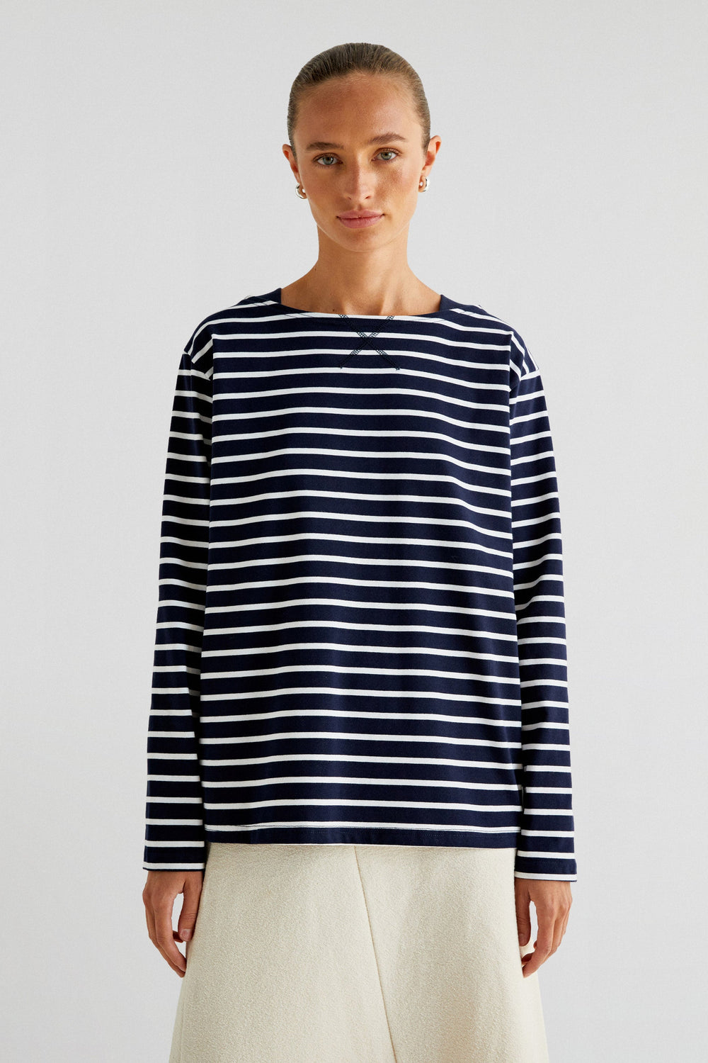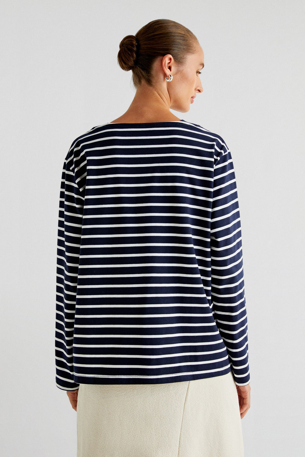 Striped T-shirt made of chunky 100% BCI cotton. Regular fit, round neck and long sleeves.