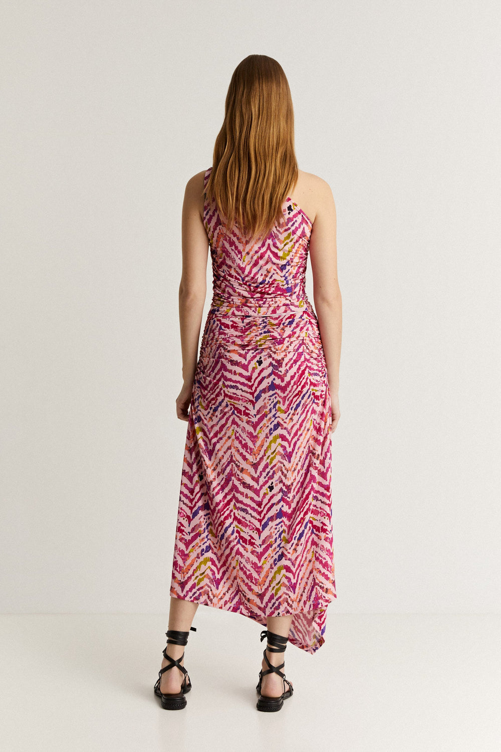 PRINTED MIDI SKIRT WITH GATHERED DETAIL