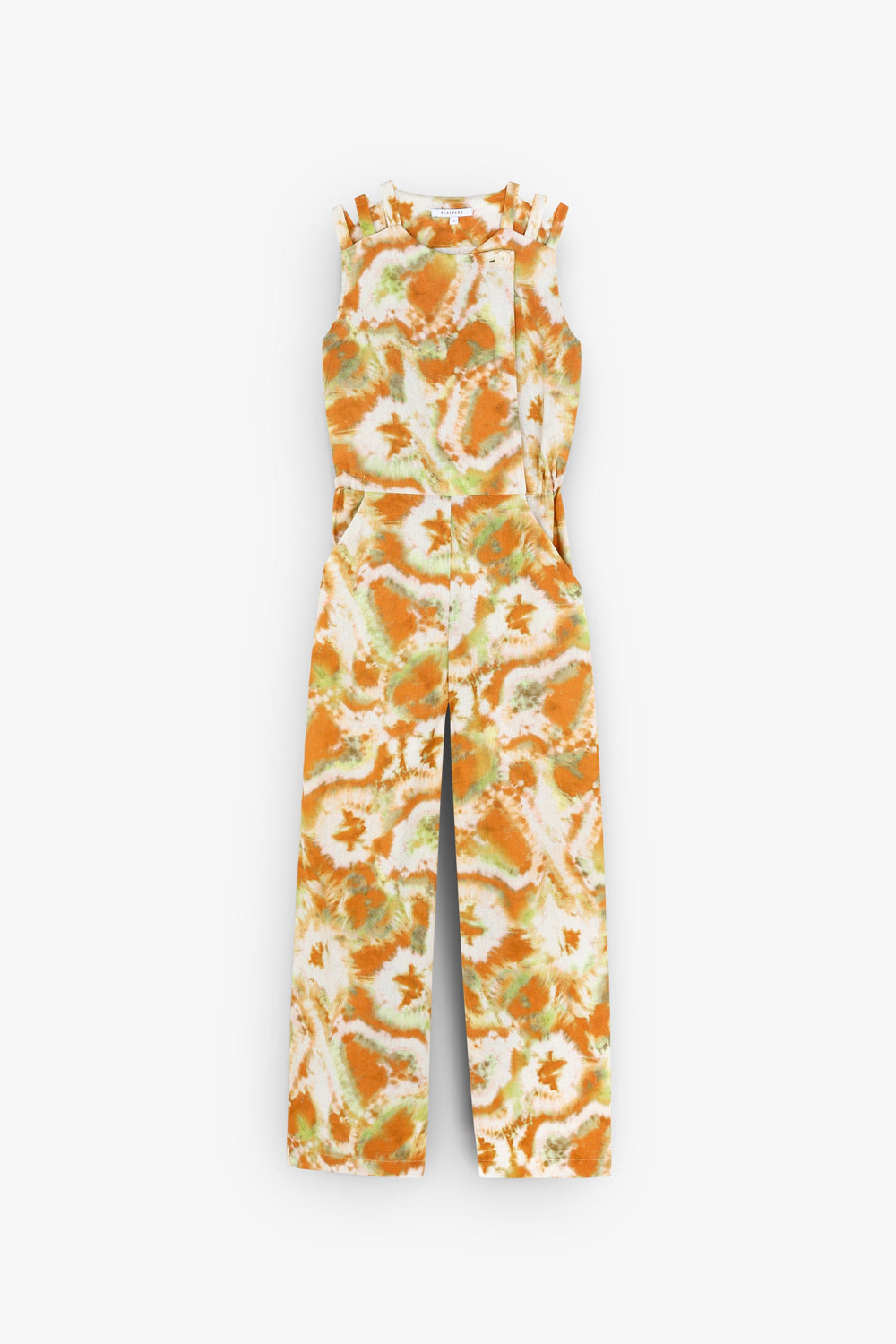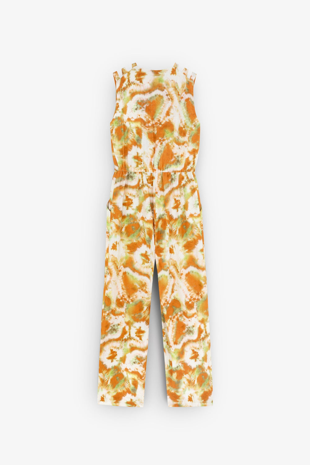 Tie-dye jumpsuit with straps detail on the shoulders.
