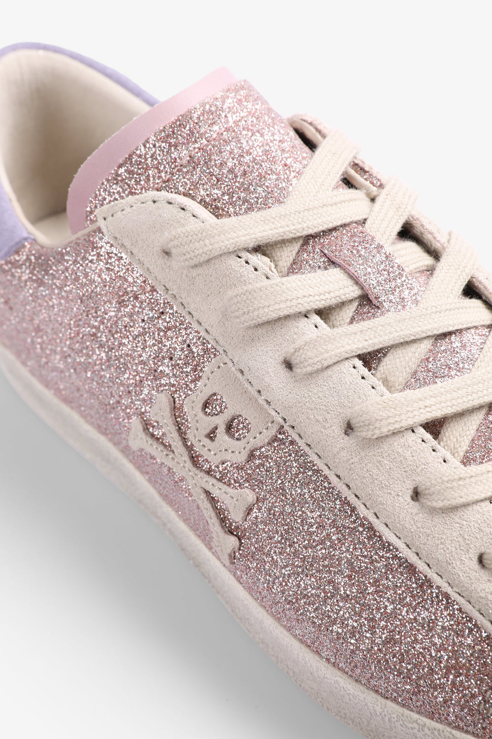 Low top glitter sneakers with side skull.