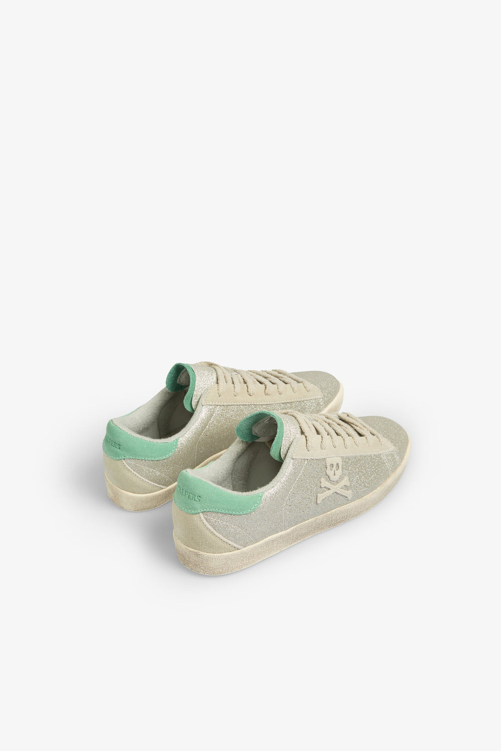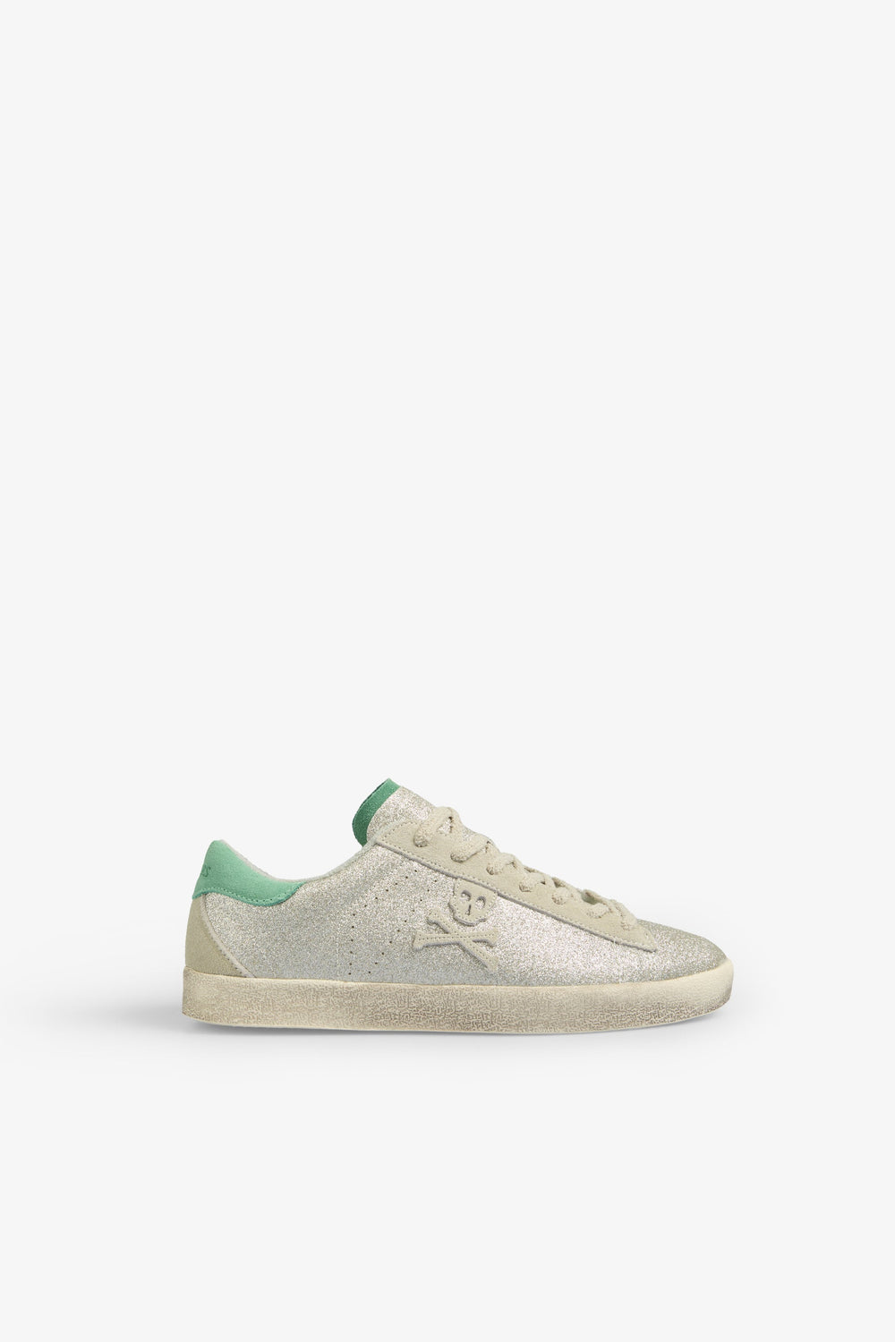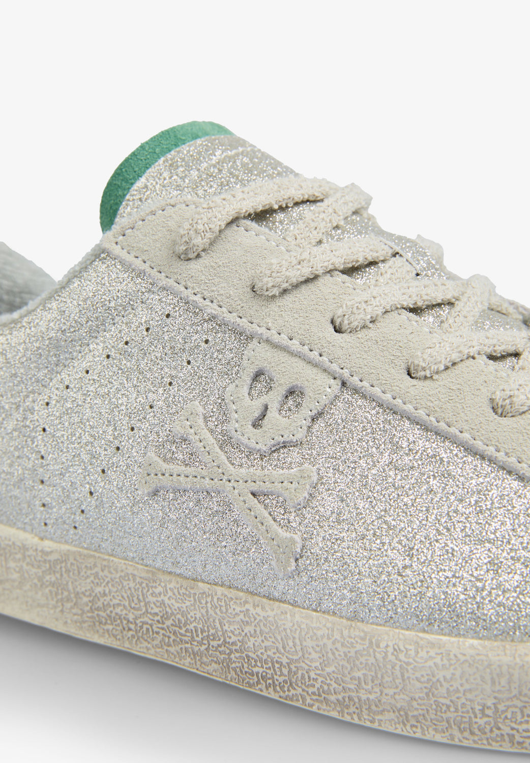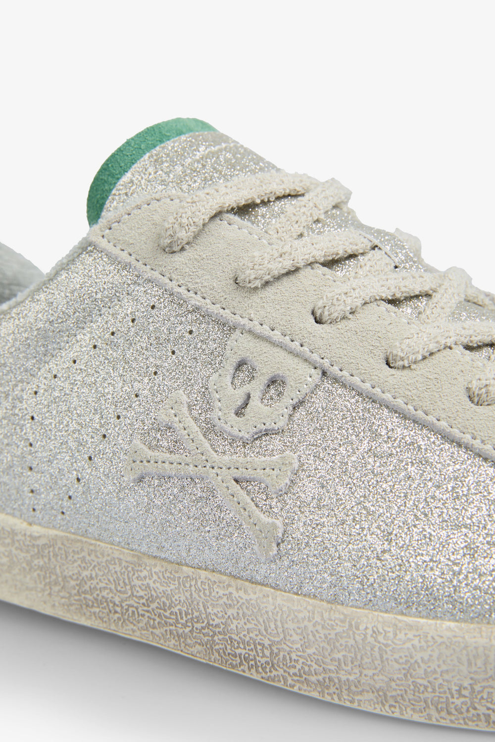 Glitter low-top sneakers made of 100% leather. Lace-up fastening, recycled rubber soles and matching skull.