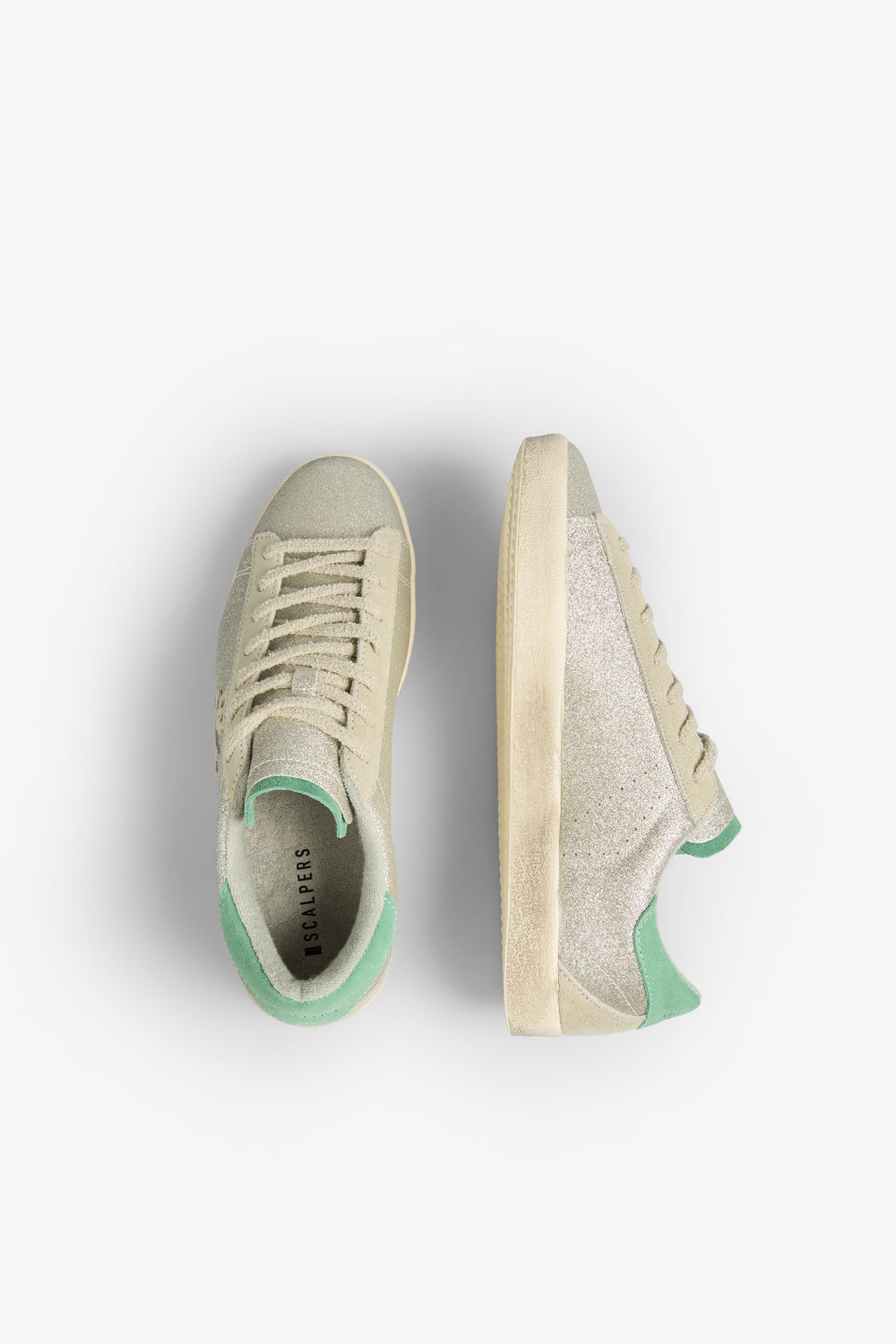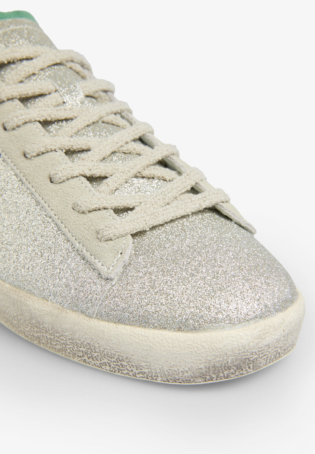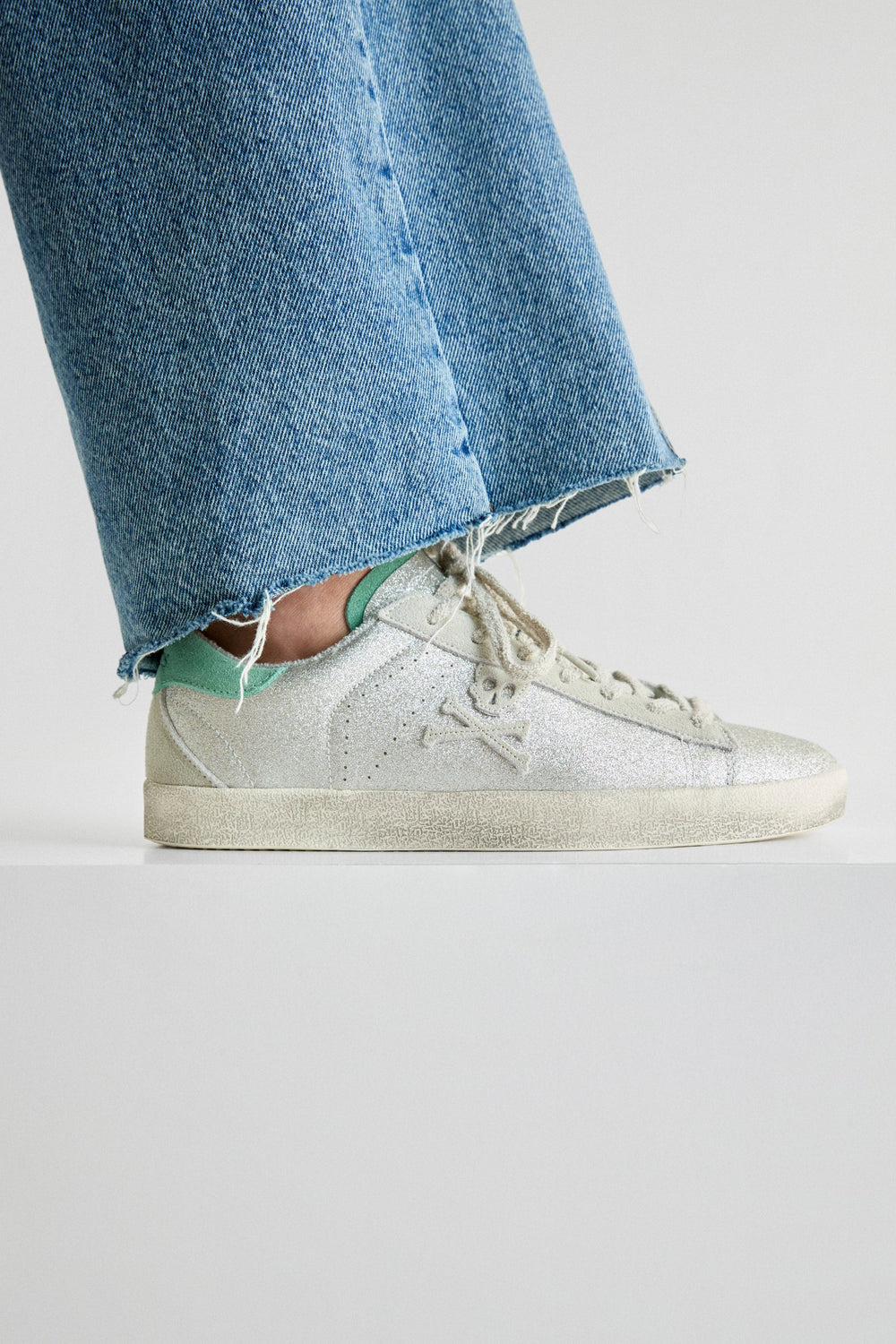 Glitter low-top sneakers made of 100% leather. Lace-up fastening, recycled rubber soles and matching skull.