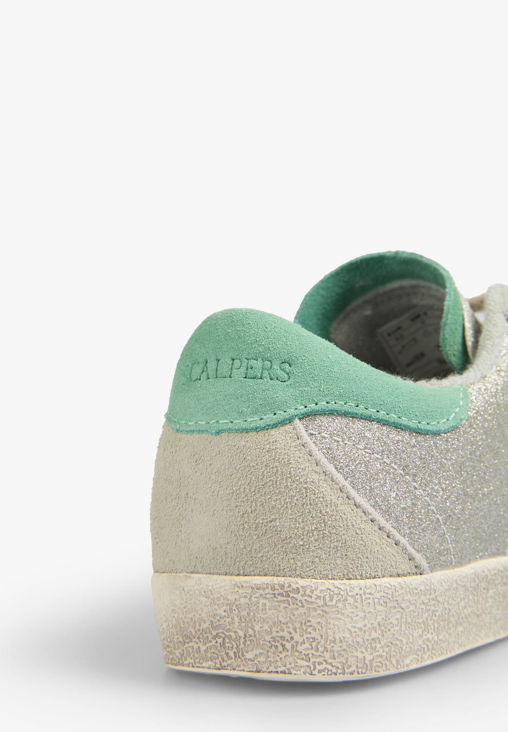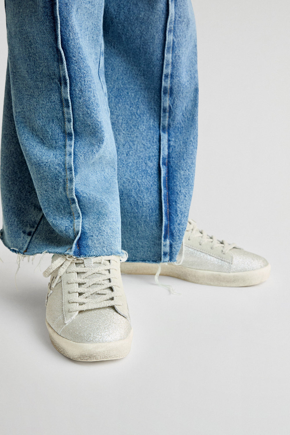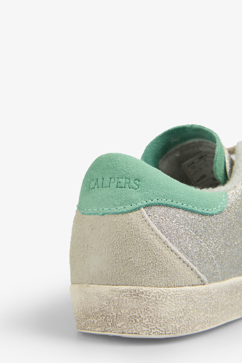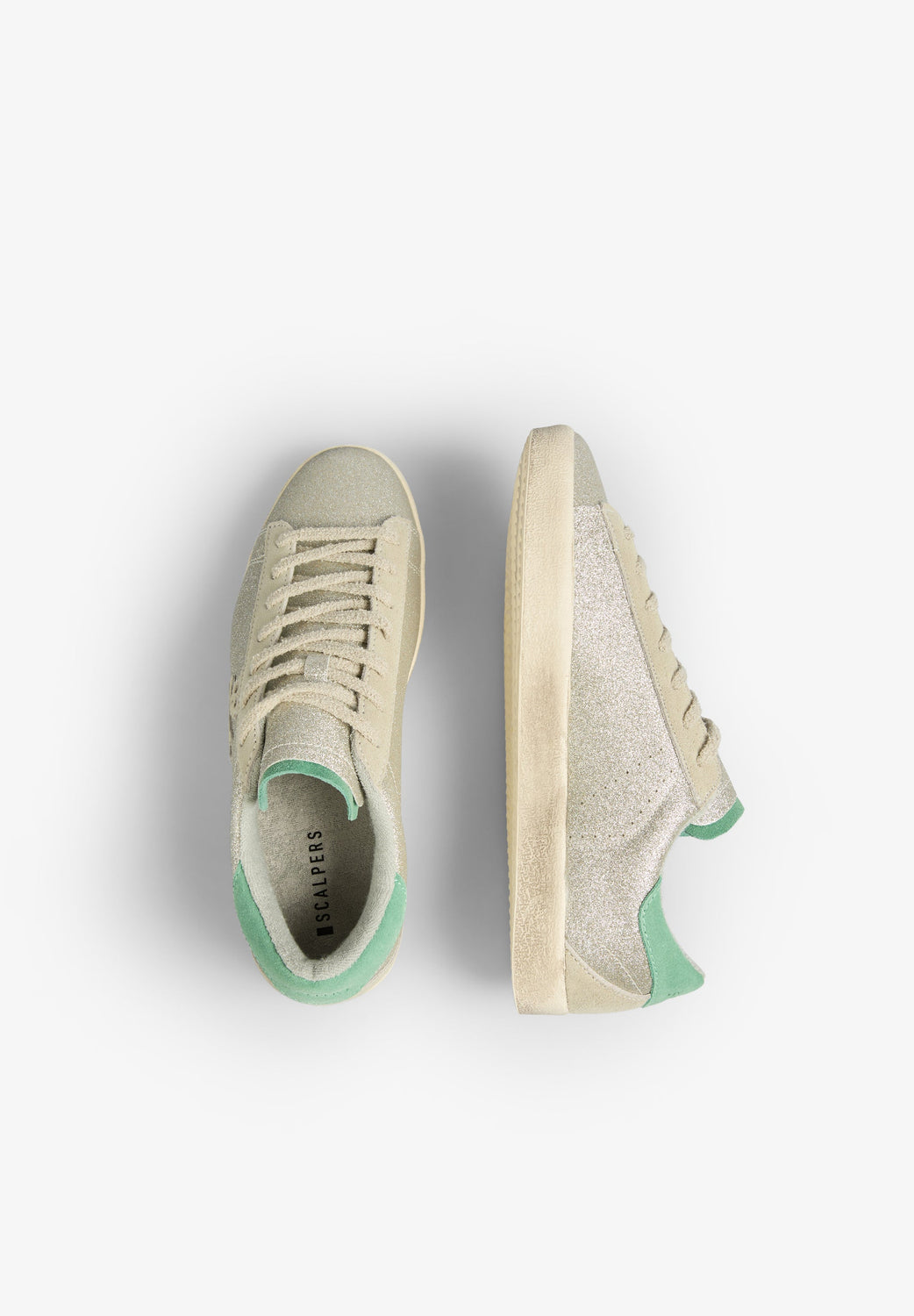 Glitter low-top sneakers made of 100% leather. Lace-up fastening, recycled rubber soles and matching skull.