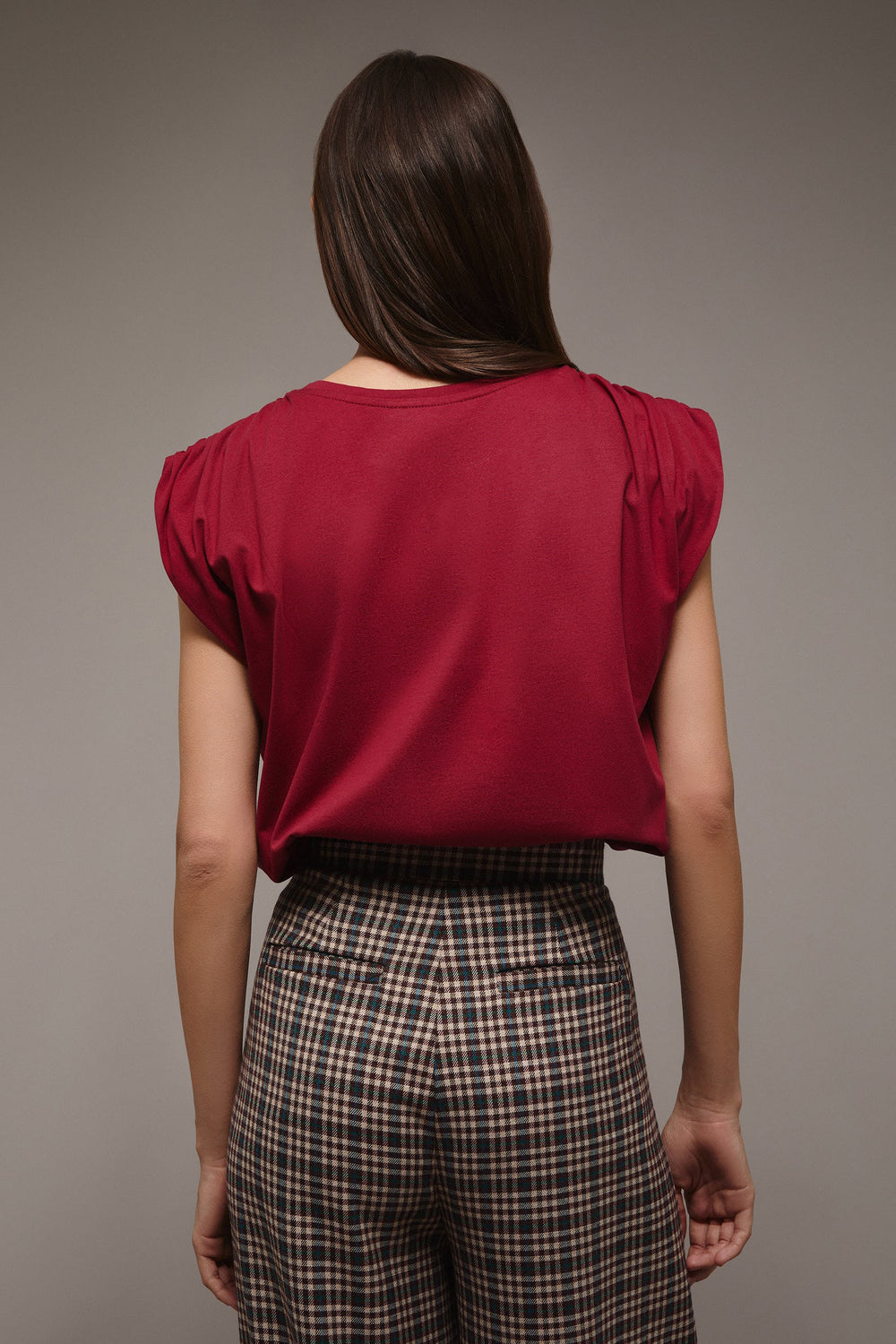 T-SHIRT WITH GATHERED SHOULDER DETAIL