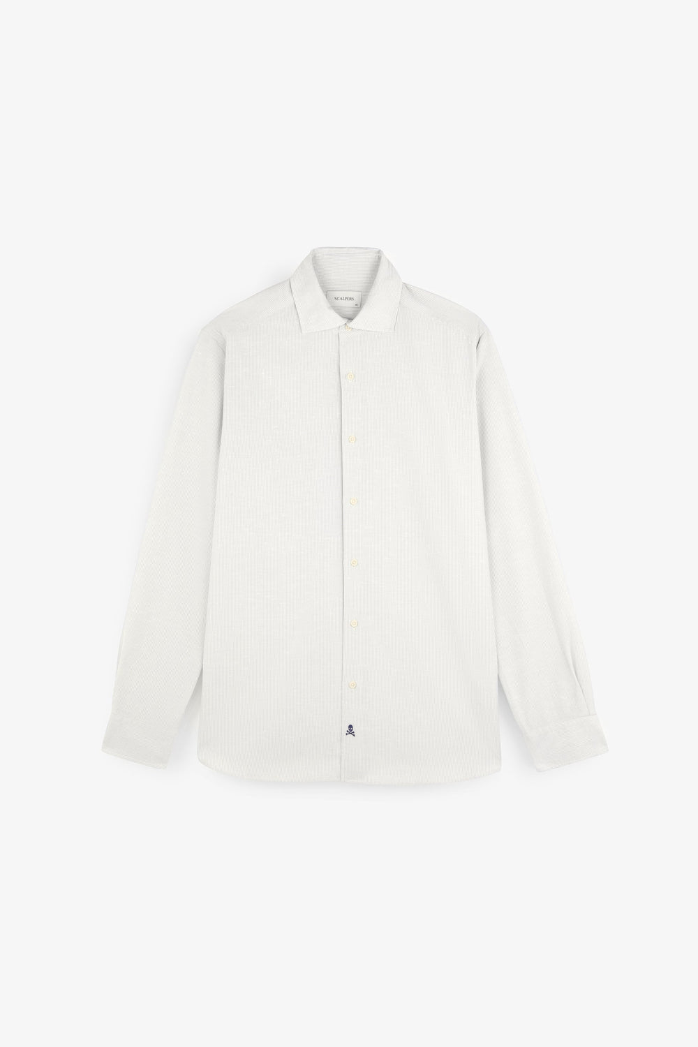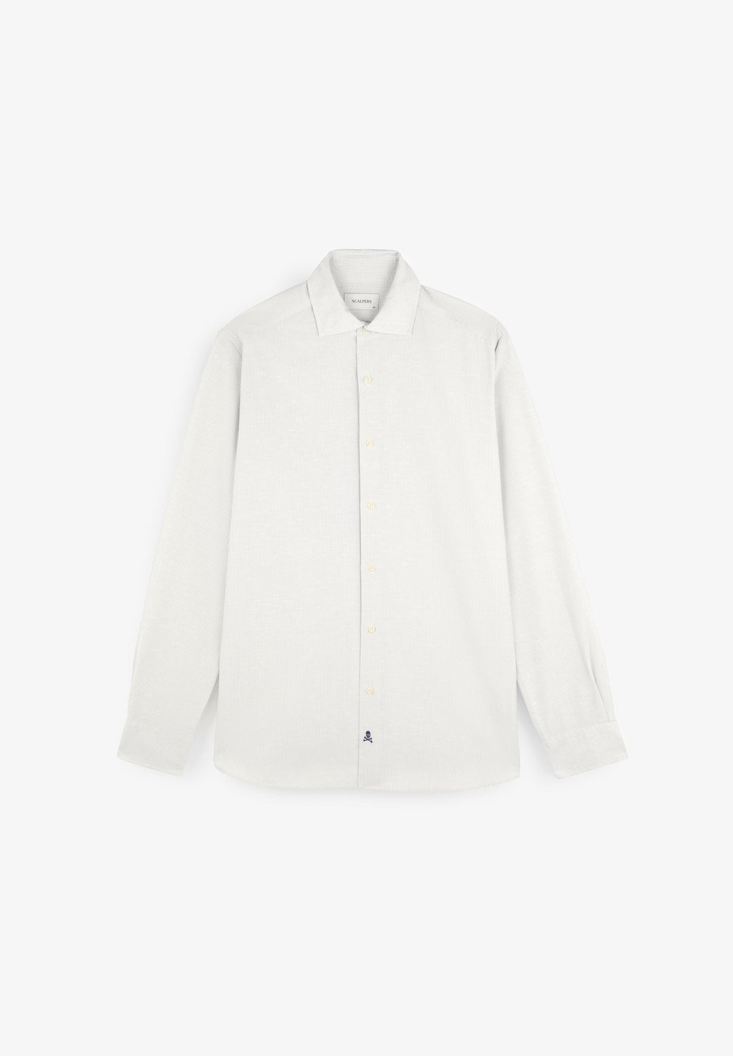 Striped shirt with contrast embroidered skull detail on the flap.