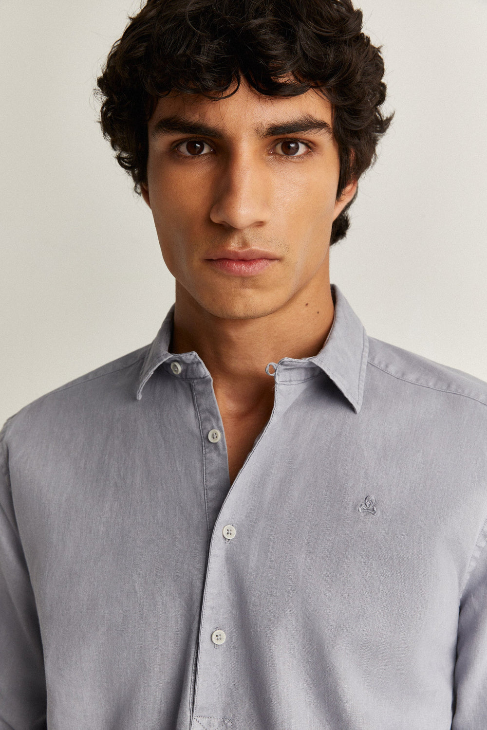 Polo shirt with matching embroidered skull detail on the chest.
