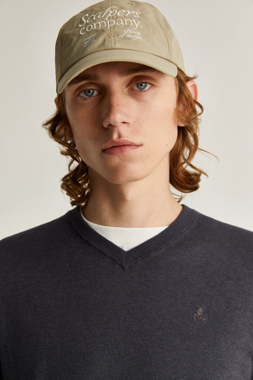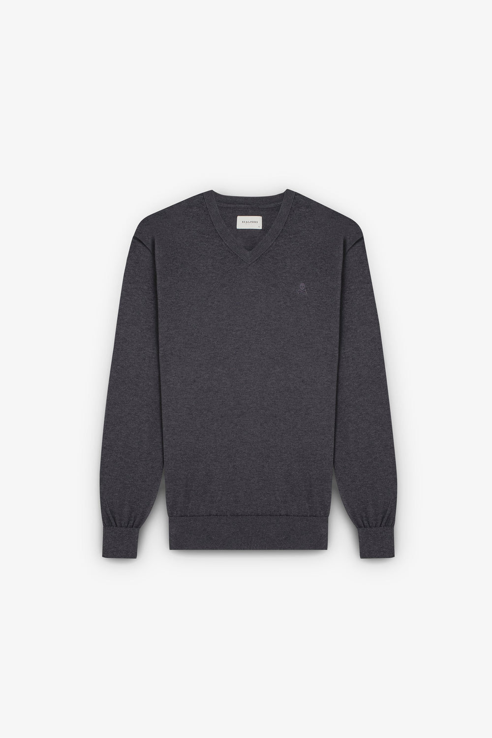 Knit sweater with matching embroidered skull detail on the chest.