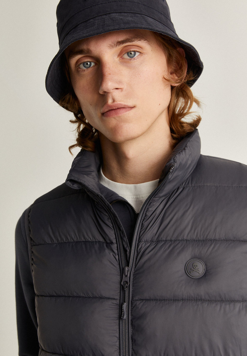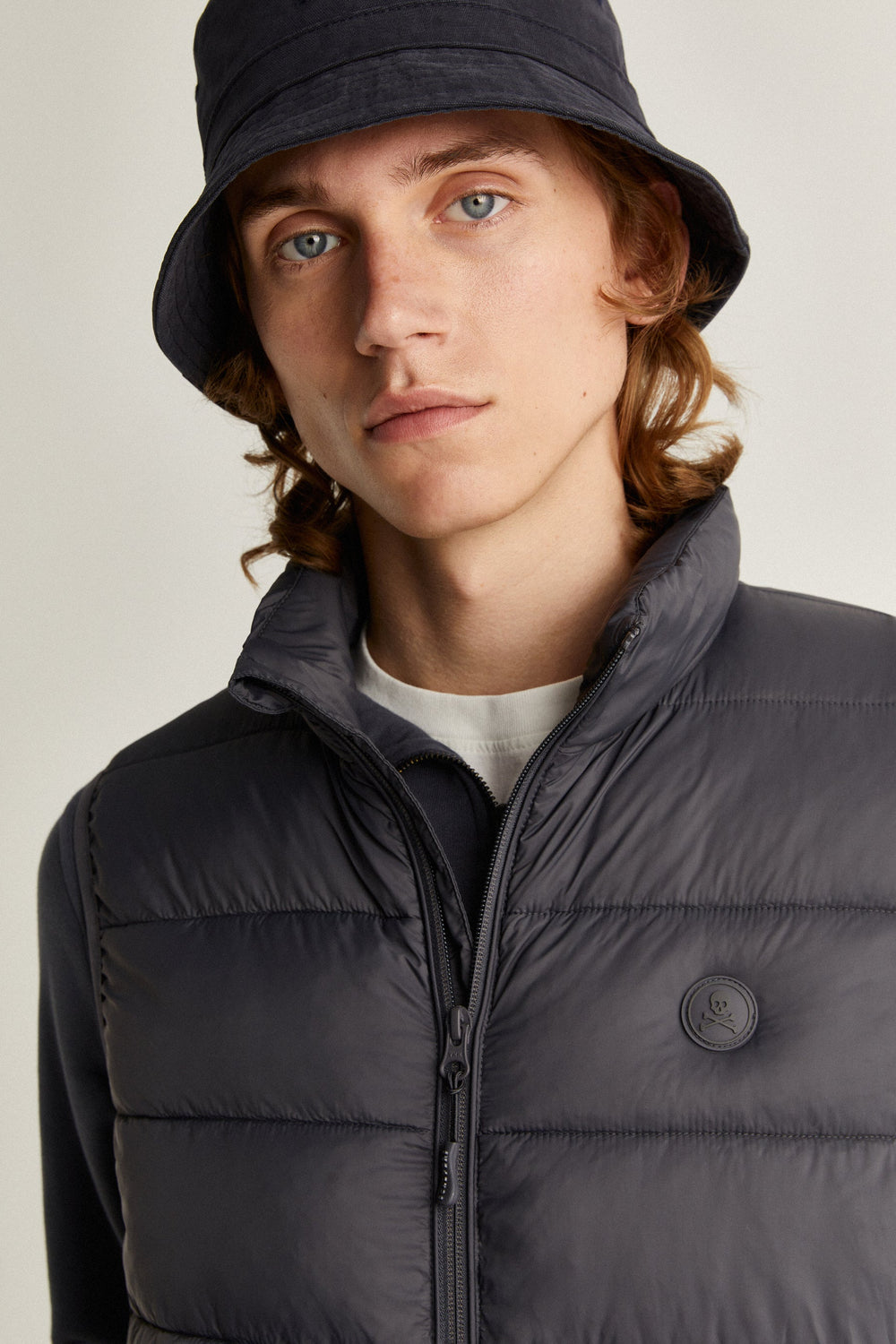 Quilted vest with matching rubberised skull patch.