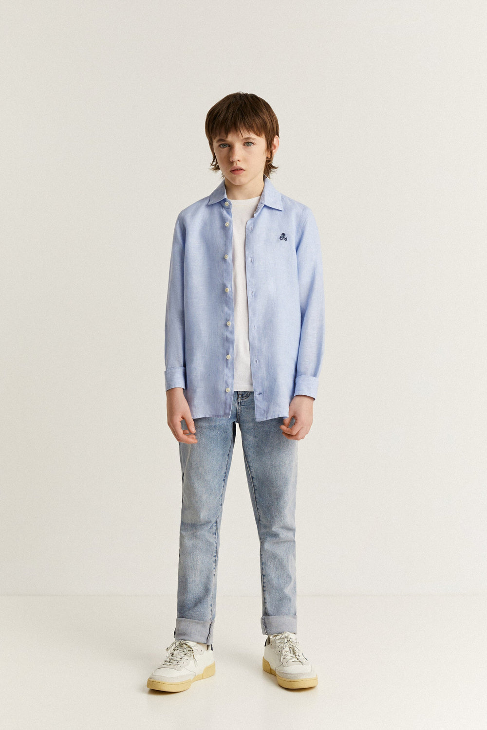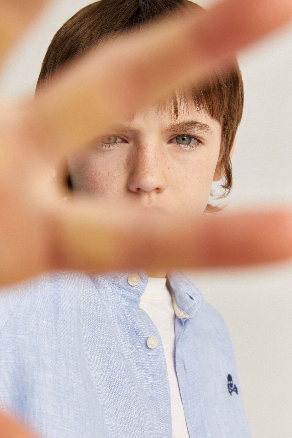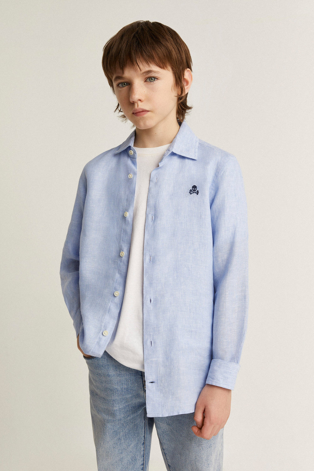 LINEN SHIRT WITH CUTAWAY COLLAR