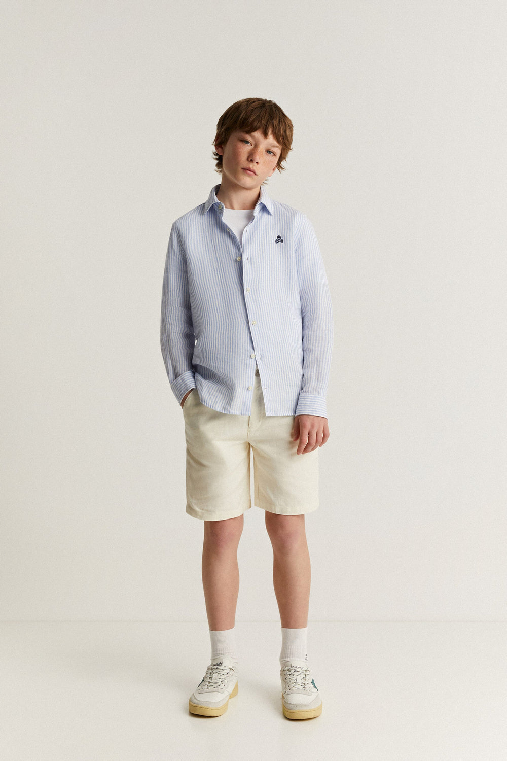 LINEN SHIRT WITH CUTAWAY COLLAR