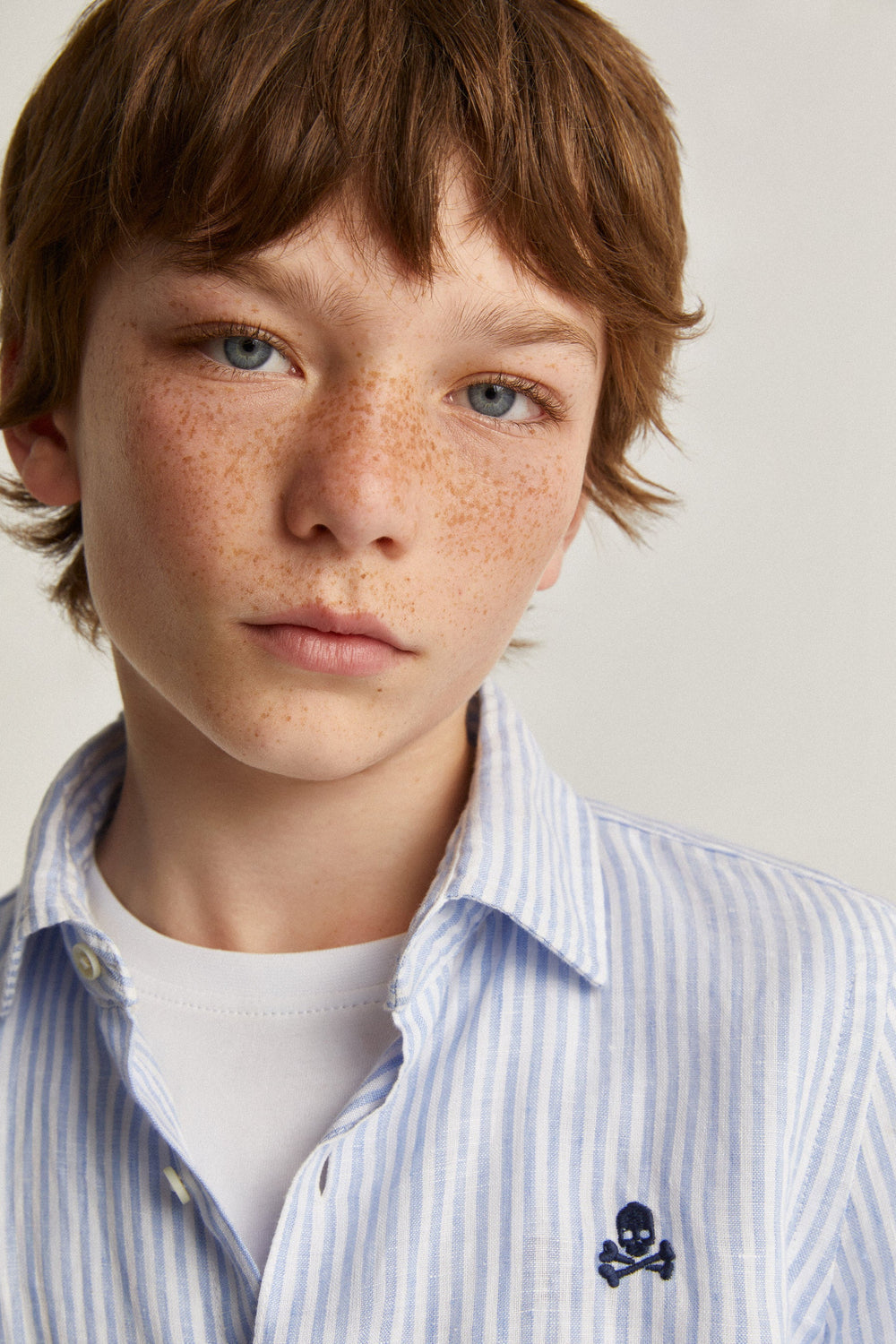 Shirt with contrast embroidered skull detail on the chest.