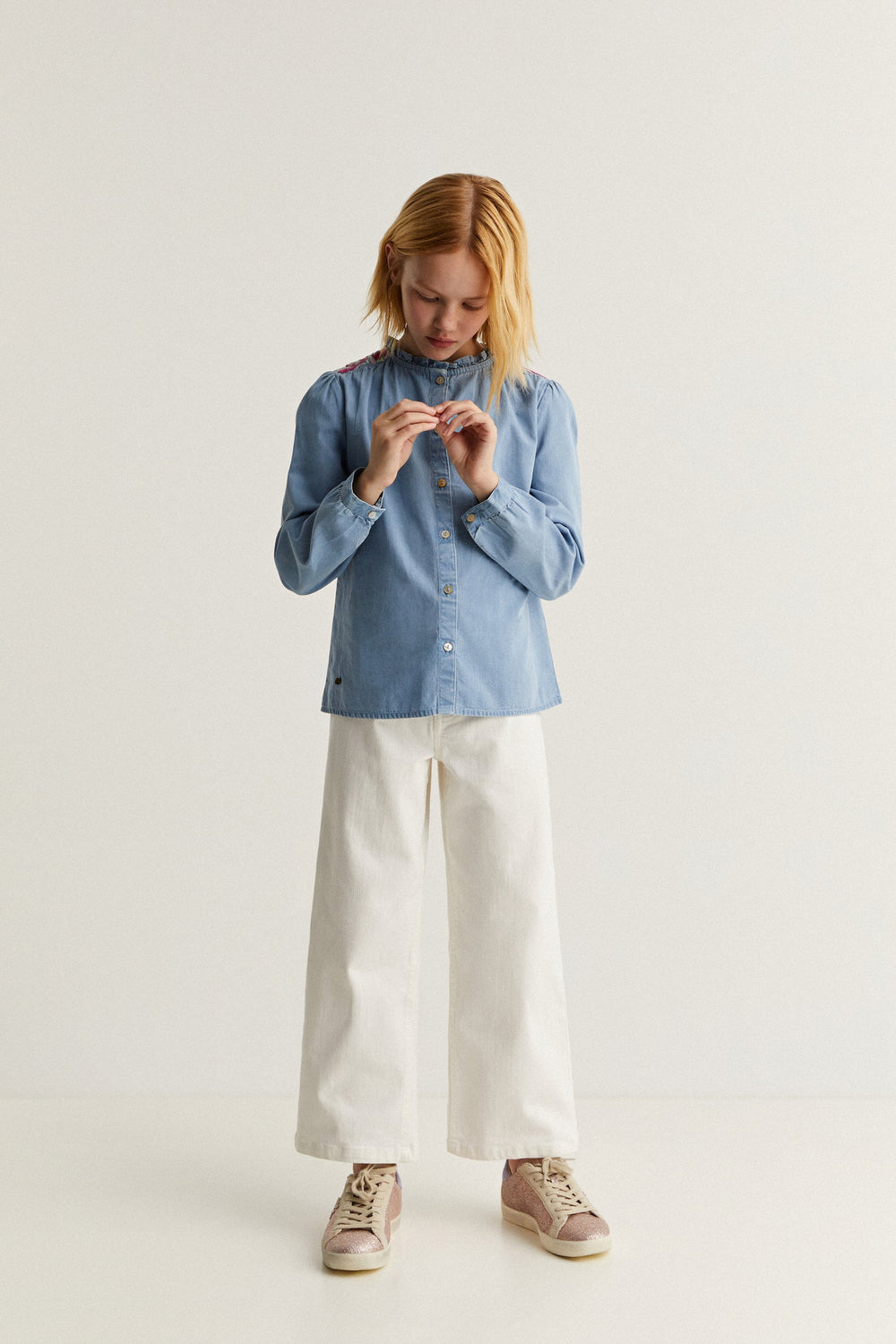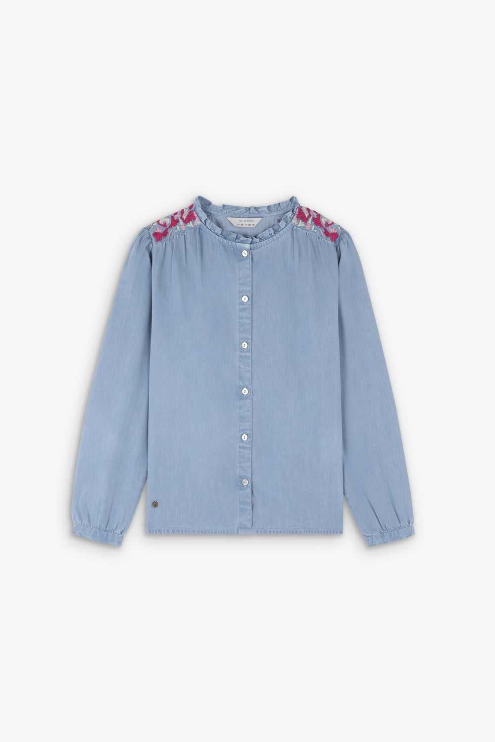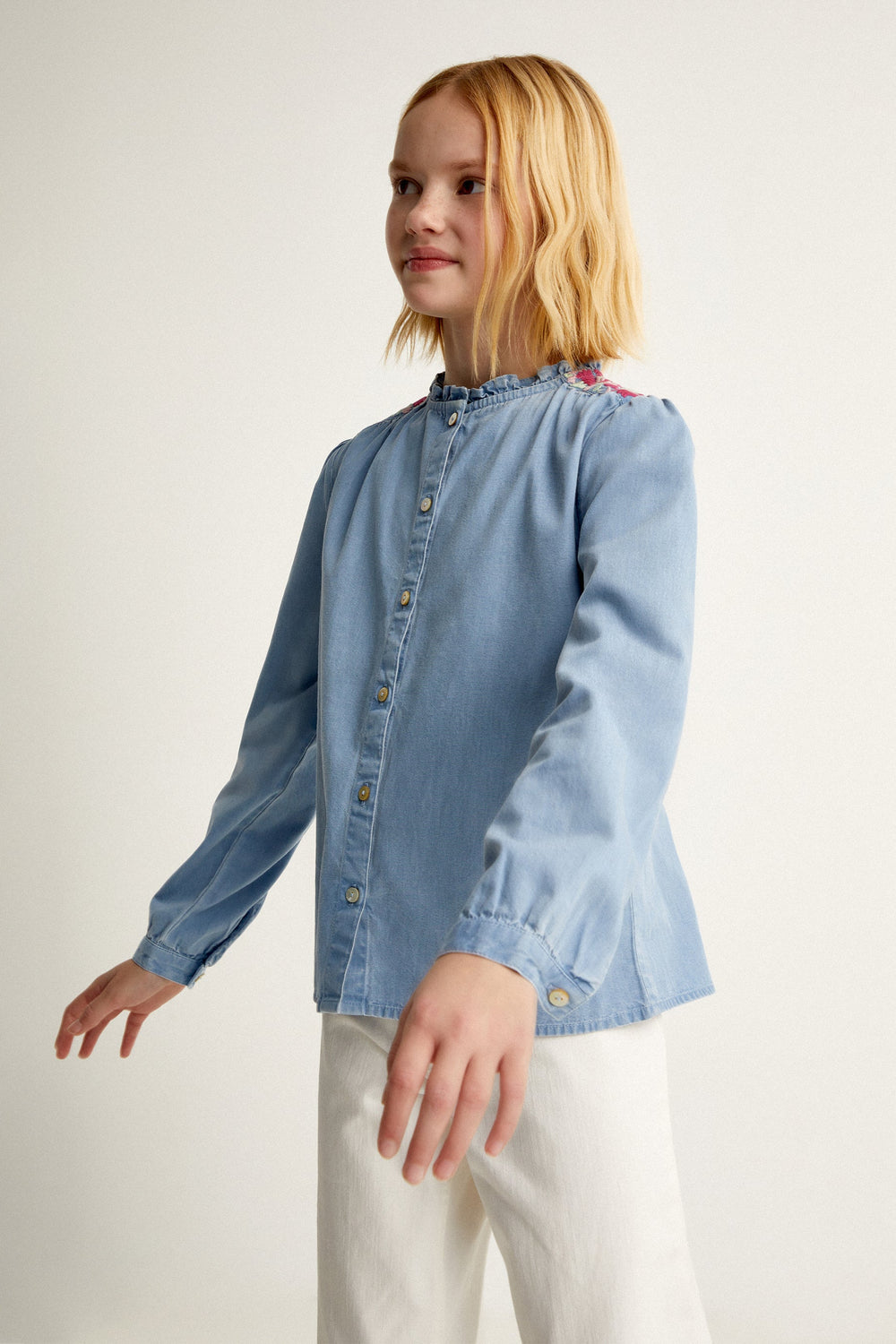 CONTRASNT EMBROIDERY DENIM BLOUSE